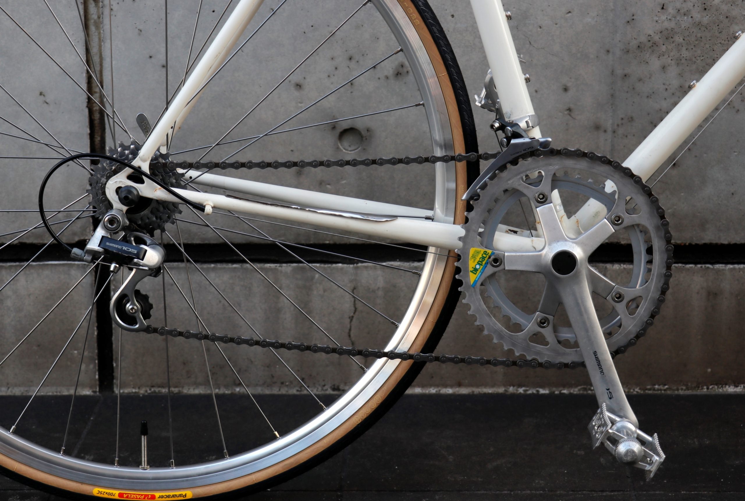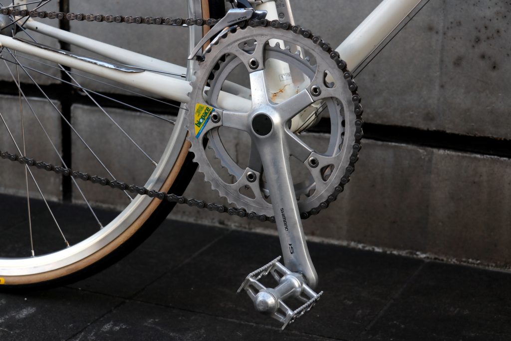 ドライブトレインはまだまだ現役で使える当時のシマノをそのまま。