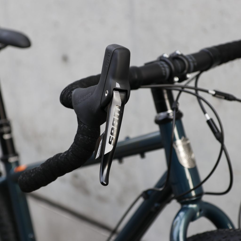 操作レバーは後付けではなく、SRAMダブルタップレバー(左側)で操作できる仕様になっております。