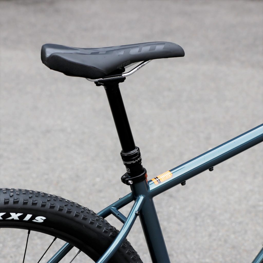 ・オフロードライドの必需品、手元のレバーで操作するドロッパーポスト標準装備