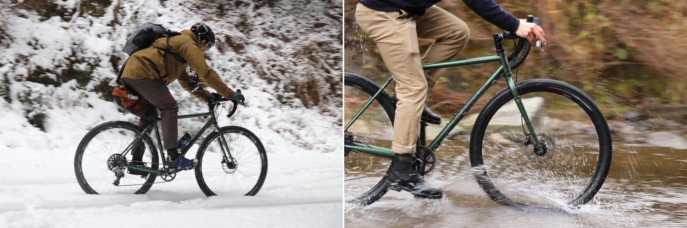 時代に左右されず永く愛され続けるシンプルなルックスを持つ ツーリングバイクを基軸としたクロモリフレームに、通常のグラベルバイクよりも更に太いMTBタイヤを飲み込みます。