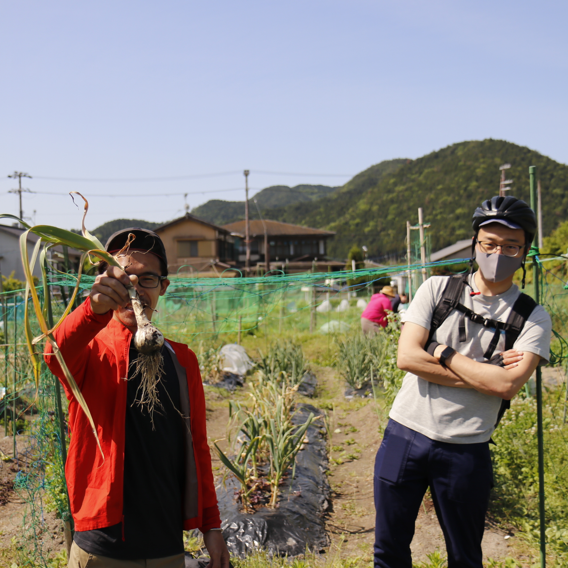 おおよそ、一年近い期間を経て、ようやく形になってきた若いニンニクをすこーし収穫*その足で近くの山までグラベルを経由、アウトドアクッキングで試食してきました!