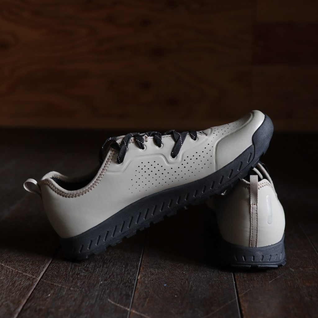 通勤をはじめとするタウンユースを目的としたシューズですが、機能性の高さから是非グラベルやトレイルでも使って欲しいモデル。泥汚れも似合いそうです。