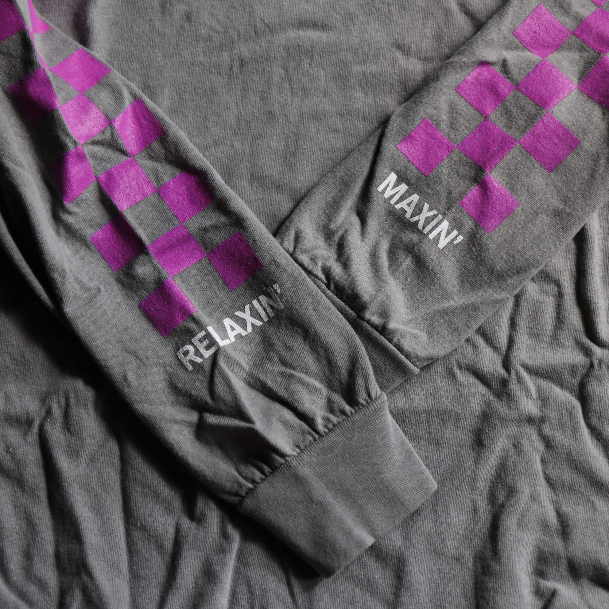 袖にプリントされたGrinduroのテーマ Maxin’ & Relaxin’