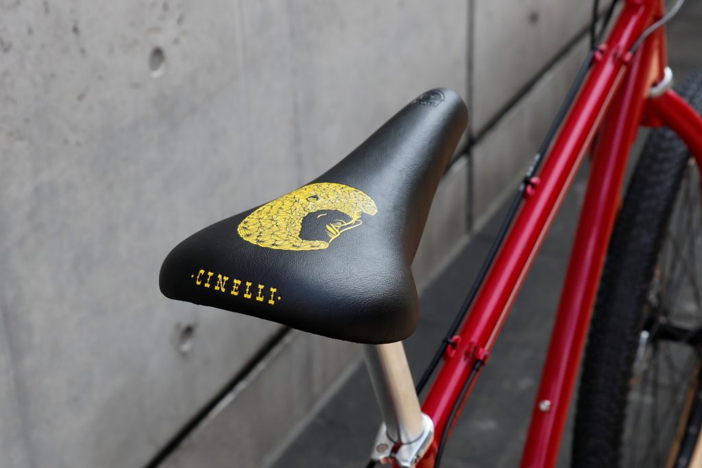 サドルには、今となってはアーバンサイクルカルチャーとは切っても切れない存在、チネリ社と世界的に有名な画家/グラフィックアーティストであるBarry McGeeとのコラボレーションで生まれたUnicanitor Barry McGee。充分なクッション性も◎。