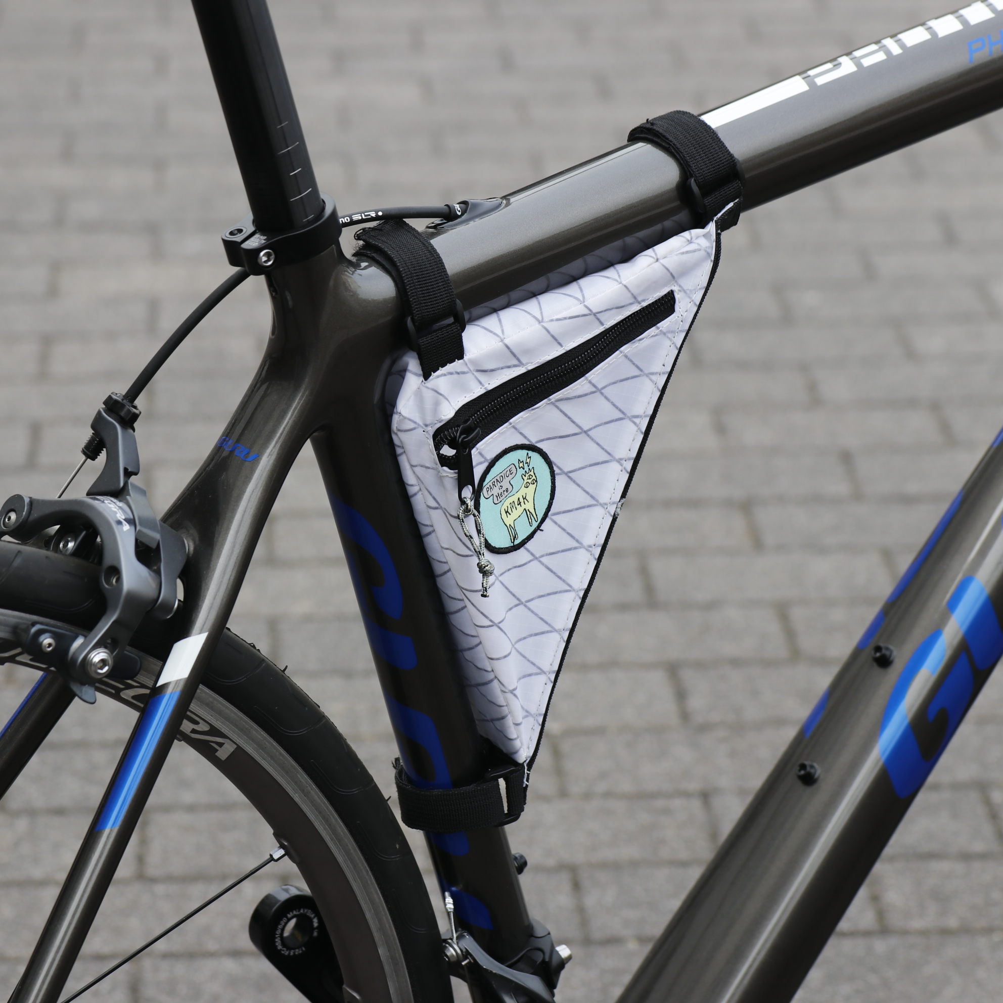 ・トップチューブとシートチューブの交差位置に3本のマジックテープで取付