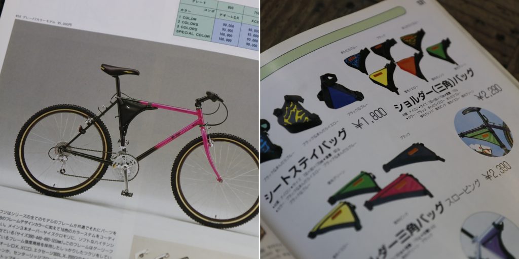 昨今ではバイクパッキングスタイルの高い注目にあわせ、似た形のバッグはあれど、ショルダーパッドが配されたフレームバッグは時代の変化に伴いその姿は影を潜め、国内ではほぼ出回っておりません。