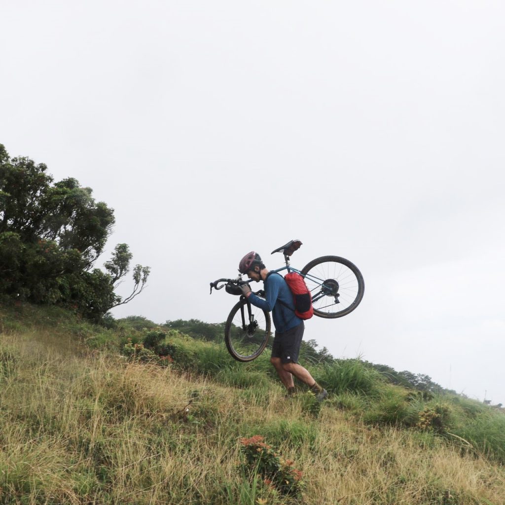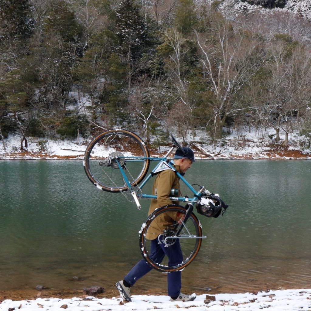 サイクリングで林道に向かっては ルート探しに 自転車を担いで道なき道を進んだり。