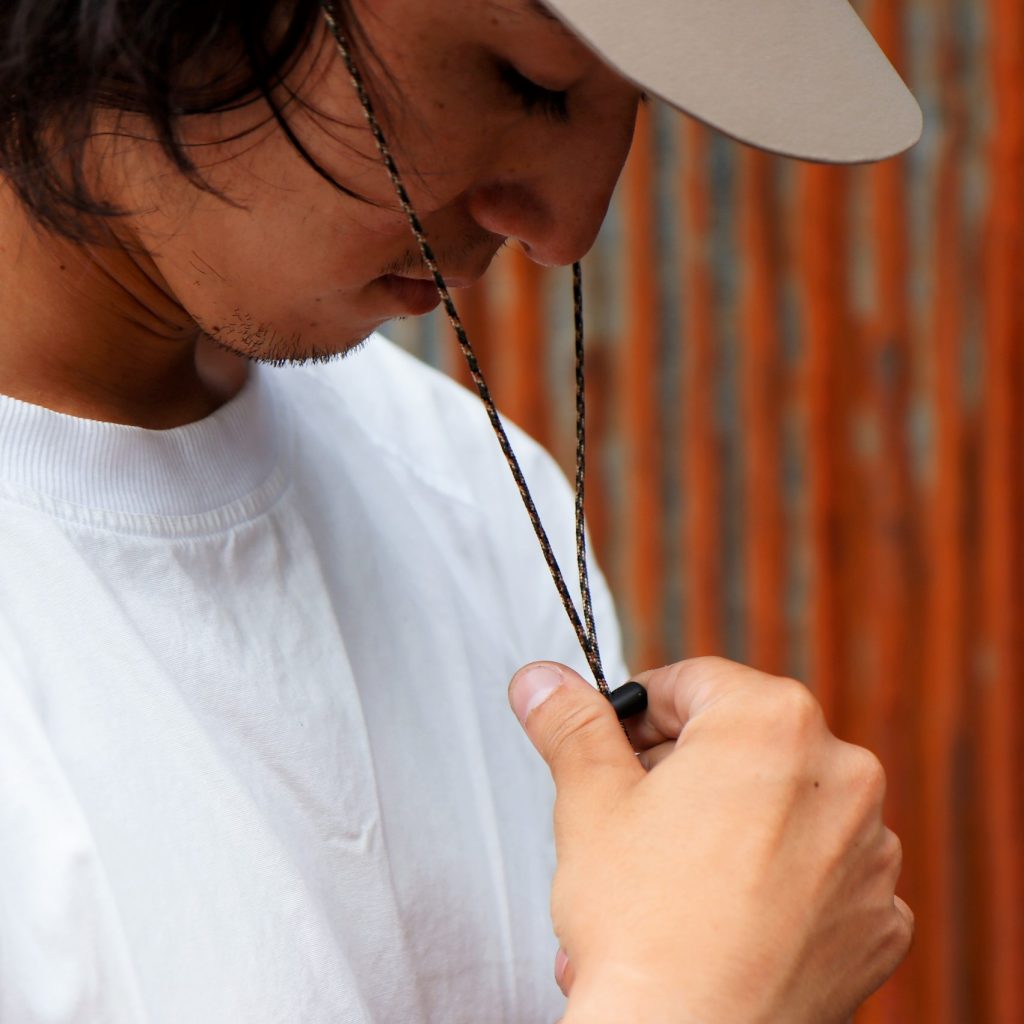 本モデルには、当店オリジナルでハットストラップを用意。風の強い日や高山地でも安心です。