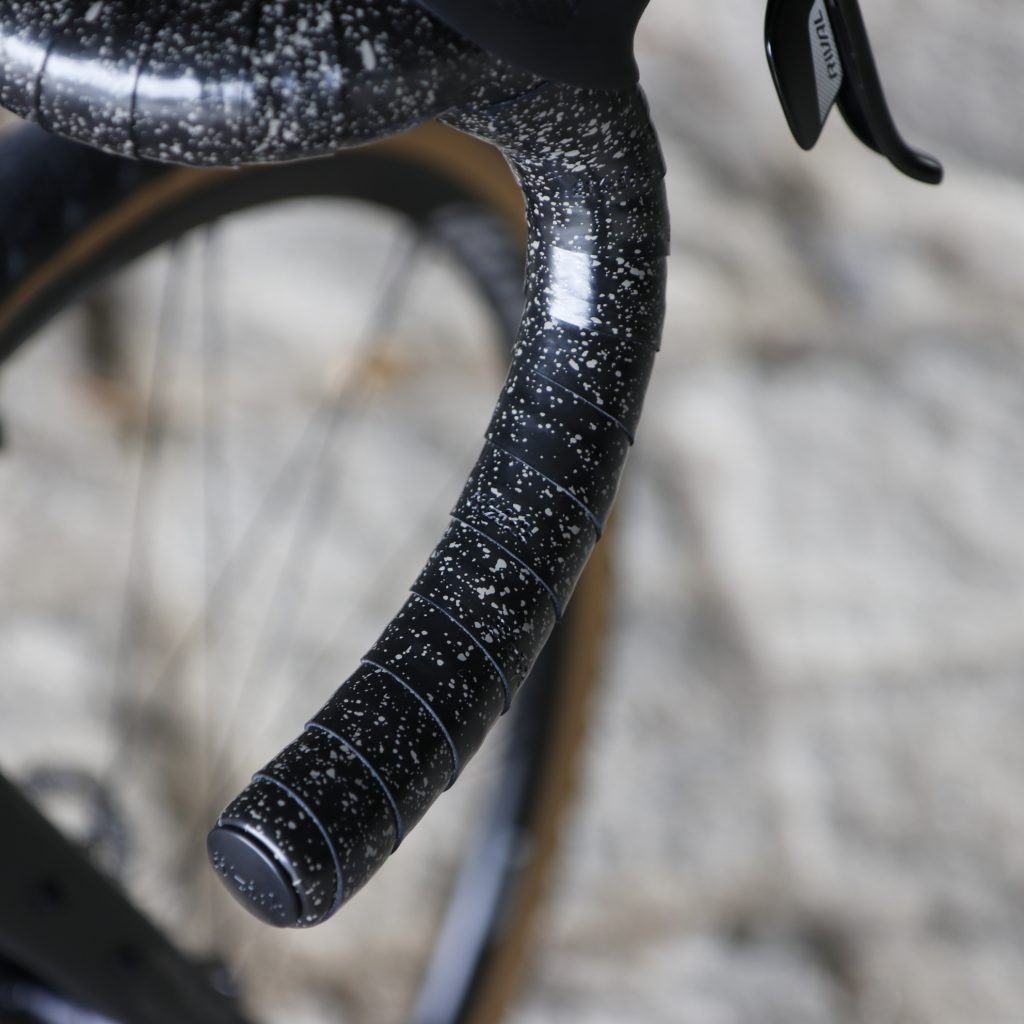 バーテープには、fi’zi:k TEMPO LES CLASSIQUESを。派手過ぎずも個性ある”スプラッシュ柄”が車体全体の中にセンス良くアクセントになっております。