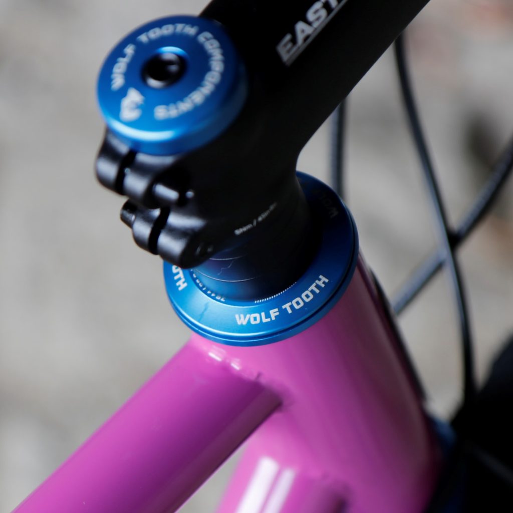 ヘッドセットには当店で今最も人気のWOLFTOOTH製がチョイス。精巧な削り出しのボディーに美しくアルマイト処理されカラーも豊富。シール部が強化されて水や汚れに強くステンレスベアリングが採用されタフなグラベルライドにも相性良し。比較的お求めやすい価格も魅力です。(シートクランプも同社/同カラーでコーディネイト)