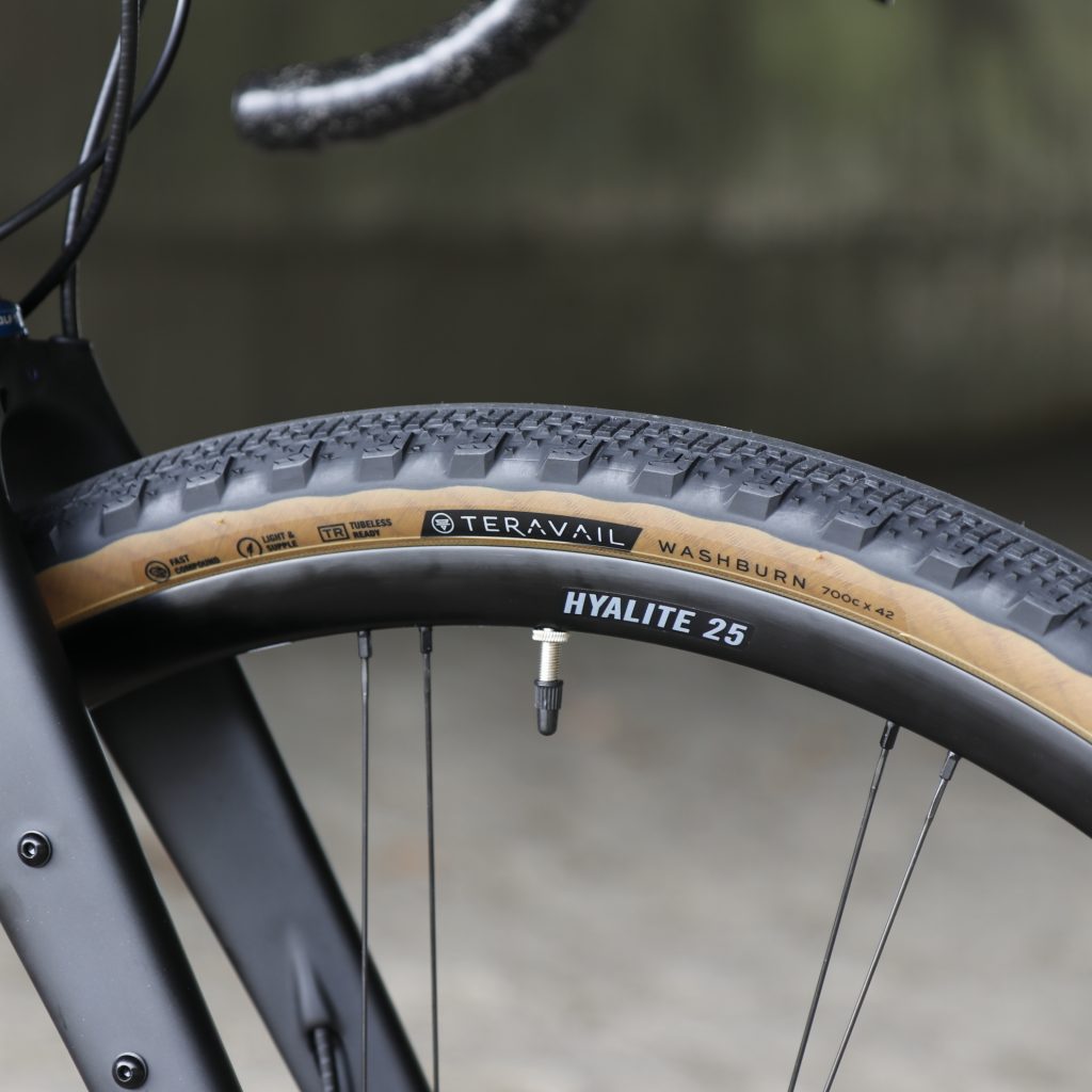 タイヤには、今回最初からチューブレス仕様をご希望という事で、ビード上がりもよくエア漏れのし難さにも定評あるTERAVAIL製より グラベルライドにジャストコミットする TERAVAIL WASHBURN 700x42C TAN (軽量タイプのLight&Supple)をチョイス。