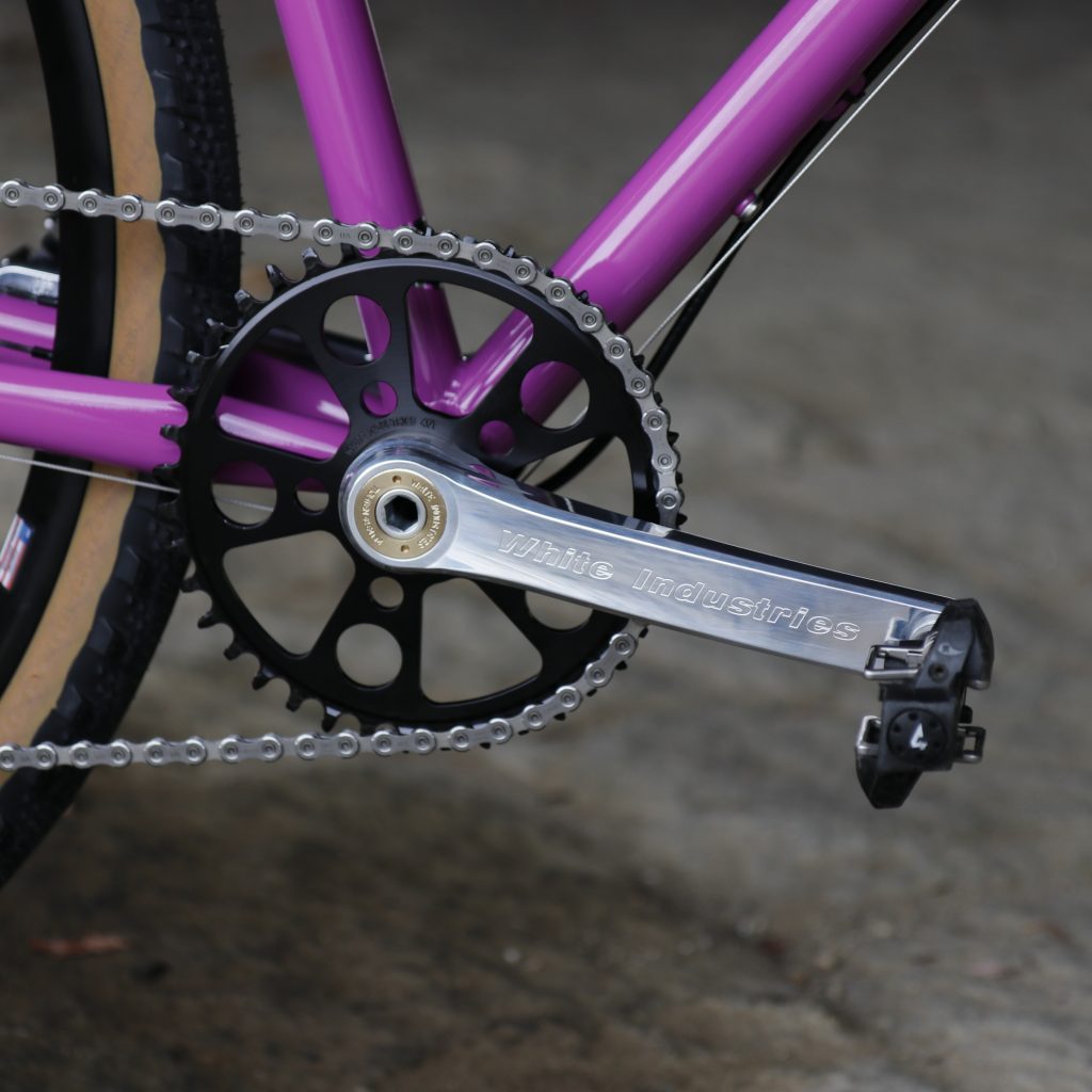 クランクには名作WHITE INDUSTRIES G30 & TSR 40Tチェーンリングをセット。洗練されたデザイン性~made in USAに拘り続けるアルミ削り出し/CNC加工による仕上げの美しさ。コスパ/数字/機能性のみには無い価値の高さありますね!