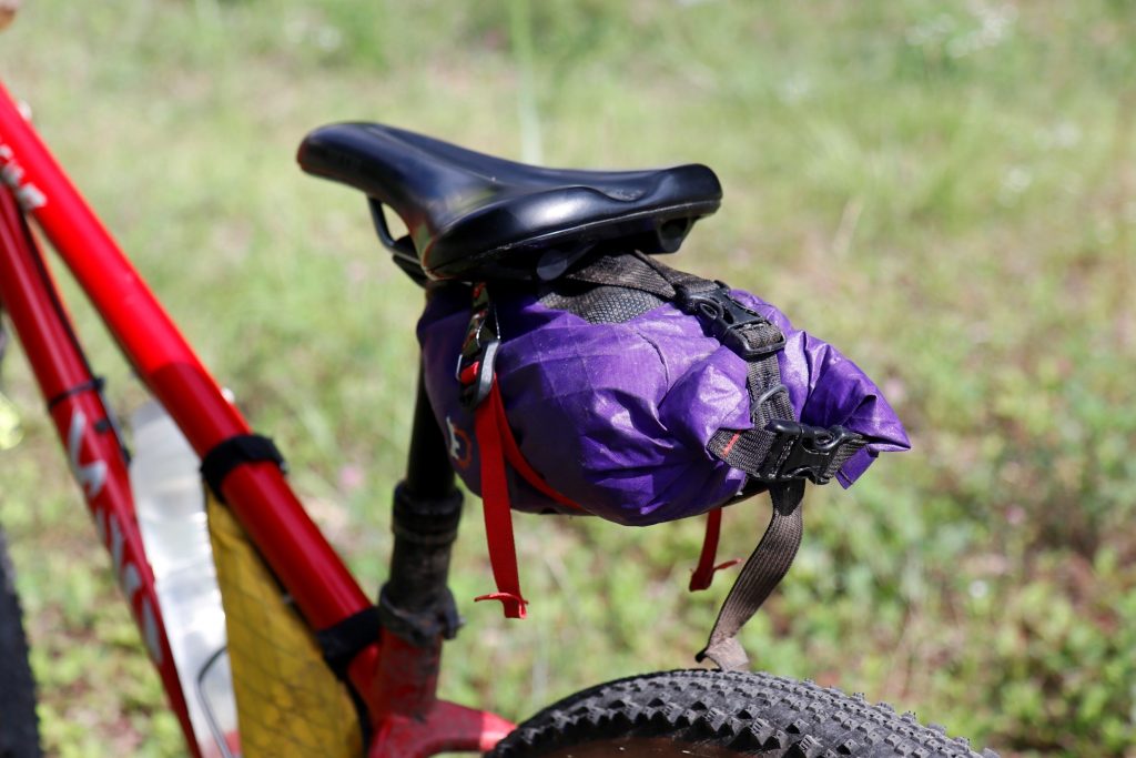 ”あともう少し”が積める3リットルサイズが使い勝手良いサドルバッグ Revelate Designs Shrew。サドルレール二点止め&絶妙な形がドロッパーシートポストとの相性良し◎