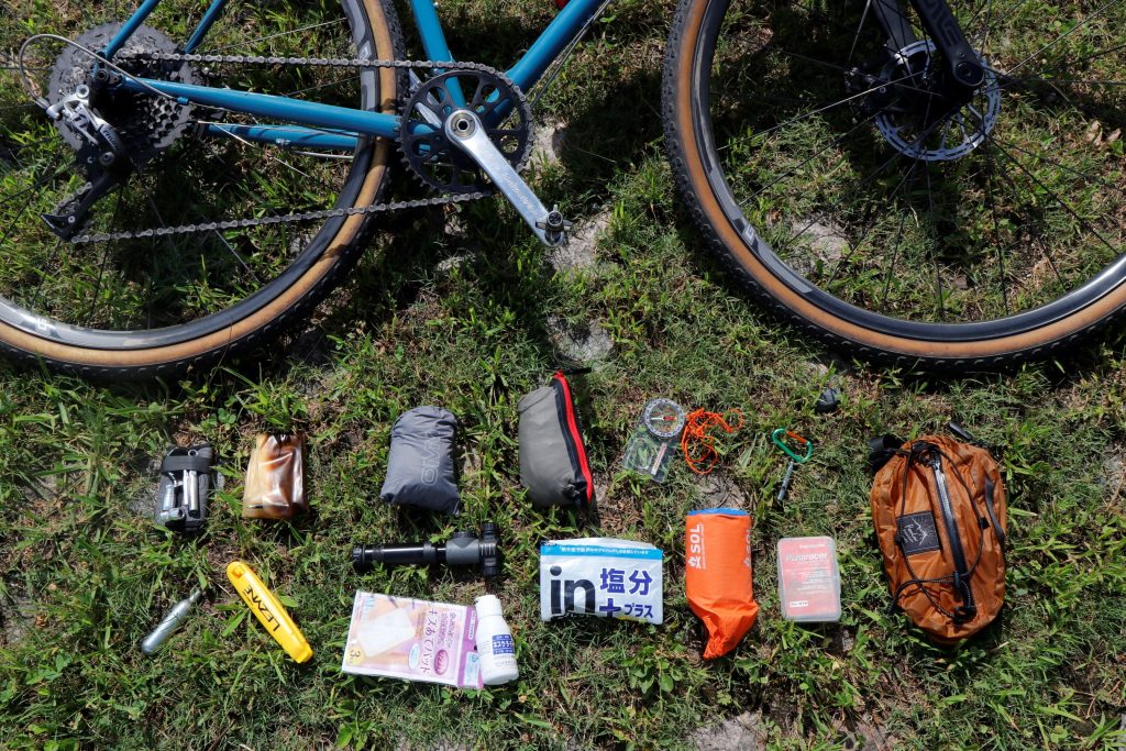 非常食、ホイッスル&コンパスに加え、エマージェンシーシートや上下レインウェアの携帯も必携リストとなるOMM。バイクパッキングアイテムへの収納のみに収納するのも良いですが、RLMWのNUTSPACKなどファニーバッグとの併用(バイクが軽くなります)もオススメです。