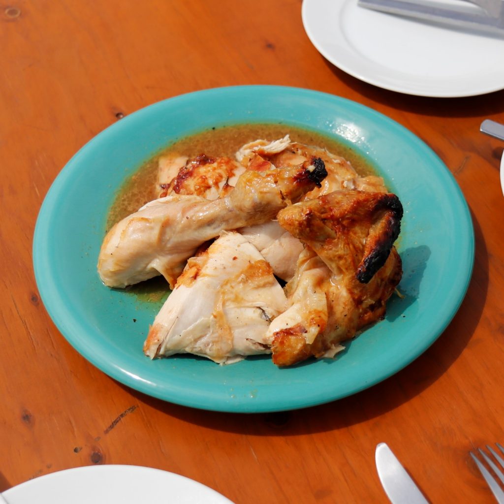 ローストチキン。朝採れズッキーニ&その花の天婦羅。それを流し込むジンジャーエール!!!