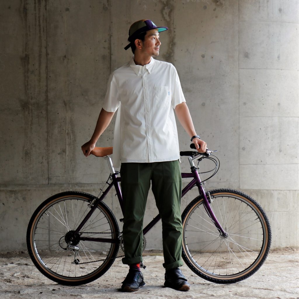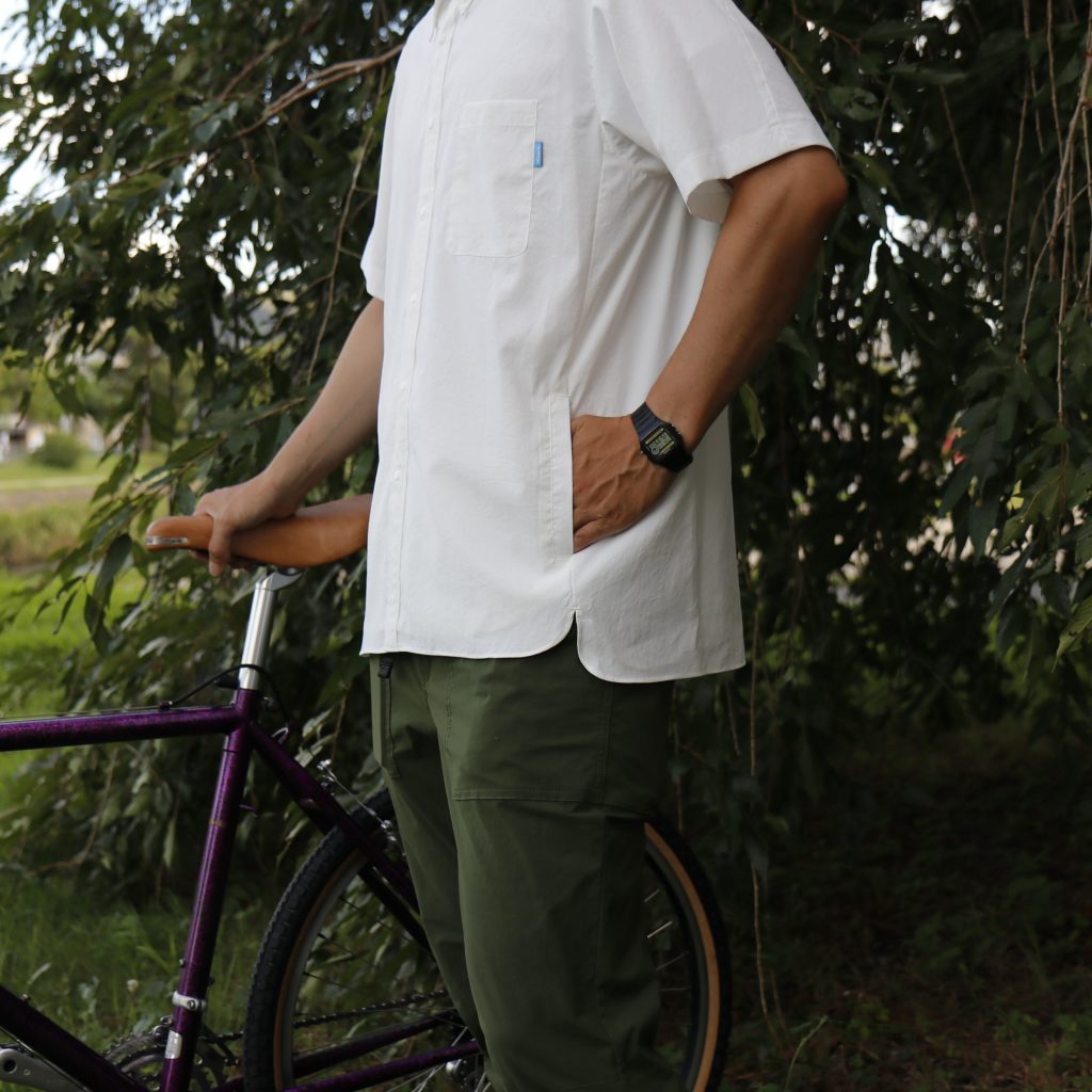 QUICK DRY CYCLE Tシャツの生地はそのままに、よりカジュアルなボタンダウンシャツに。