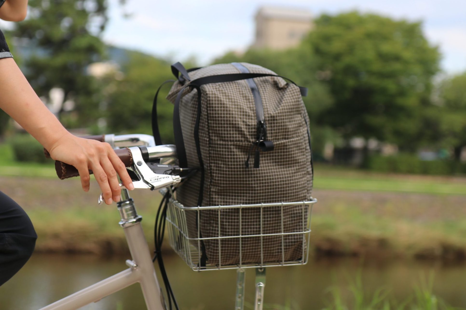 エコバッグ的に持ち歩いたり、サイクリングや登山の帰りに、サッと開いて汚れたシューズやヘルメットを入れておいたりとアウトドアアクティビティのリアルな要望が形になっておりますね。