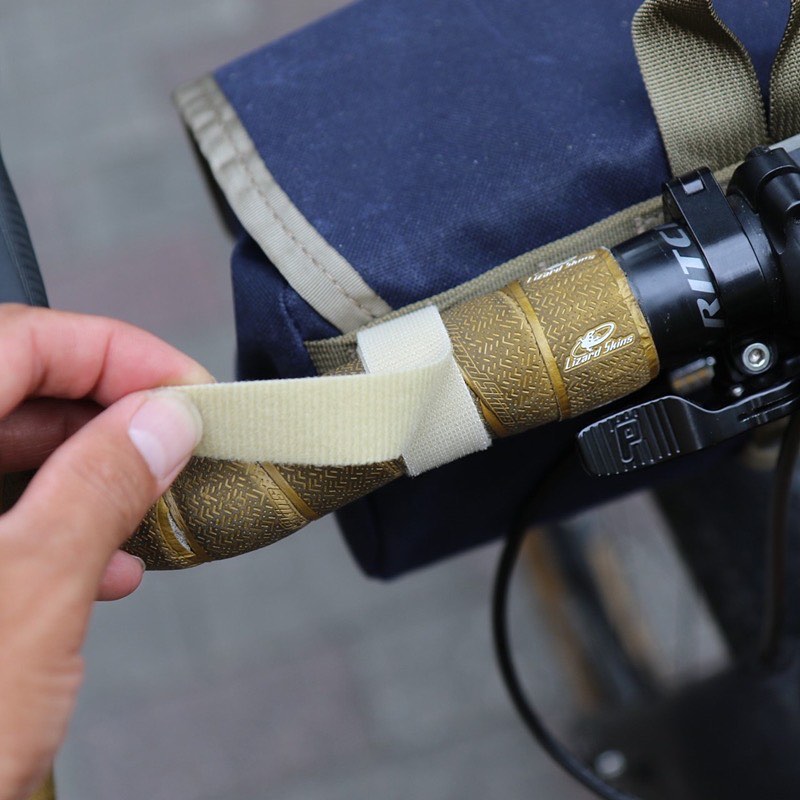 取り付けはハンドルバーへのベルクロ×2とヘッドチューブへのスタンダードな固定方法。
