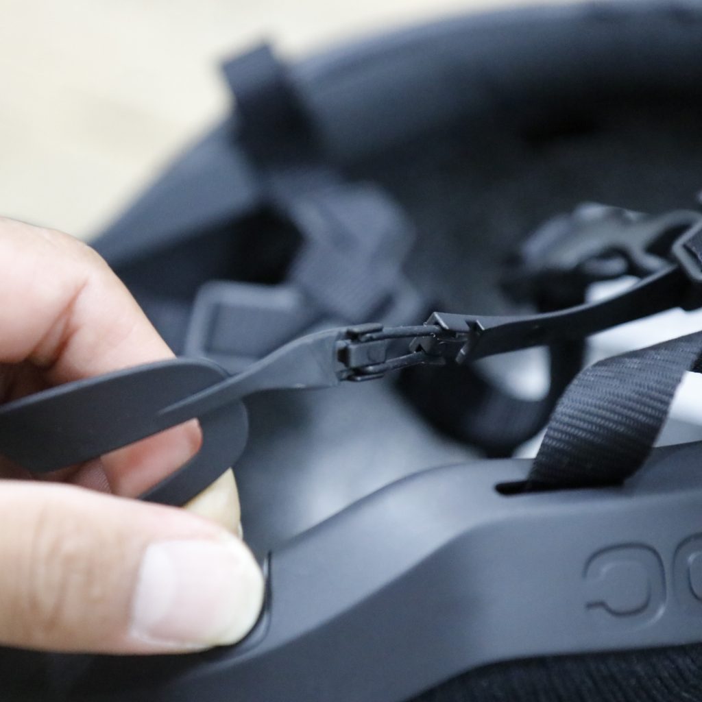 後頭部にあるはずの見慣れたダイヤルアジャスタは存在せず、サイドのストレッチ性あるストラップが伸縮する事で程よくフィットする仕組みとなっています。