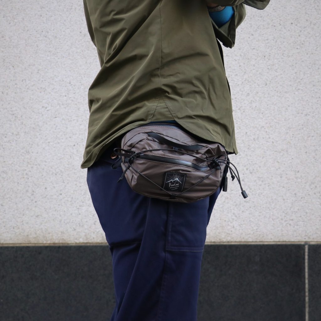 軽い・見た目以上に沢山入る・ショックコード有りであふれた荷物外に括れるファニーバッグ。