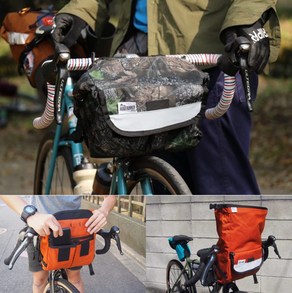 ドロップバーとの相性良し。他社バイクパッキングギアにはないギミック、上方向にサイズ可変する”縦ロールトップ” による最大10リットル容量。バイクパッキングツーリングのマスターピース的存在。