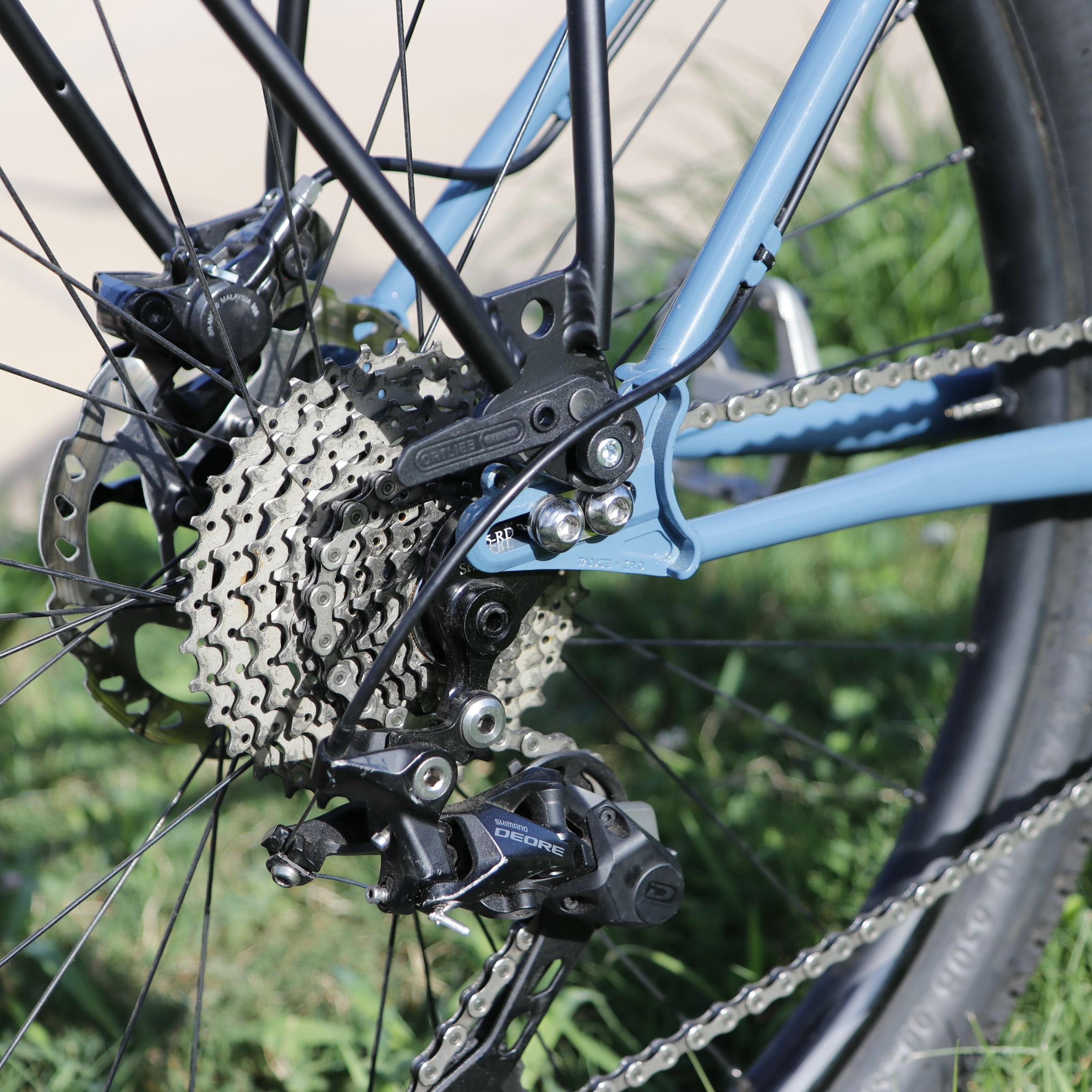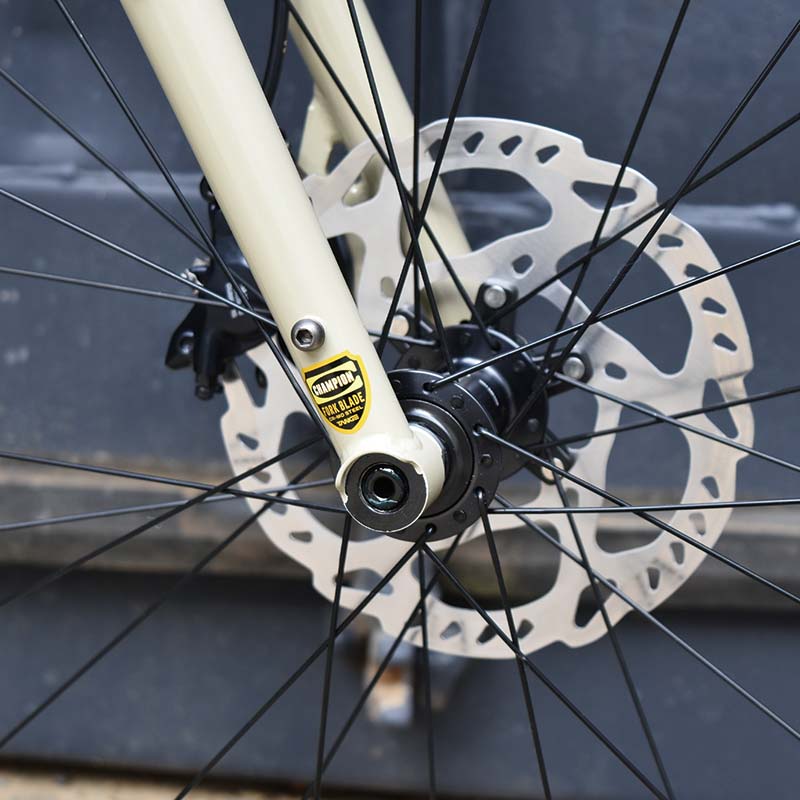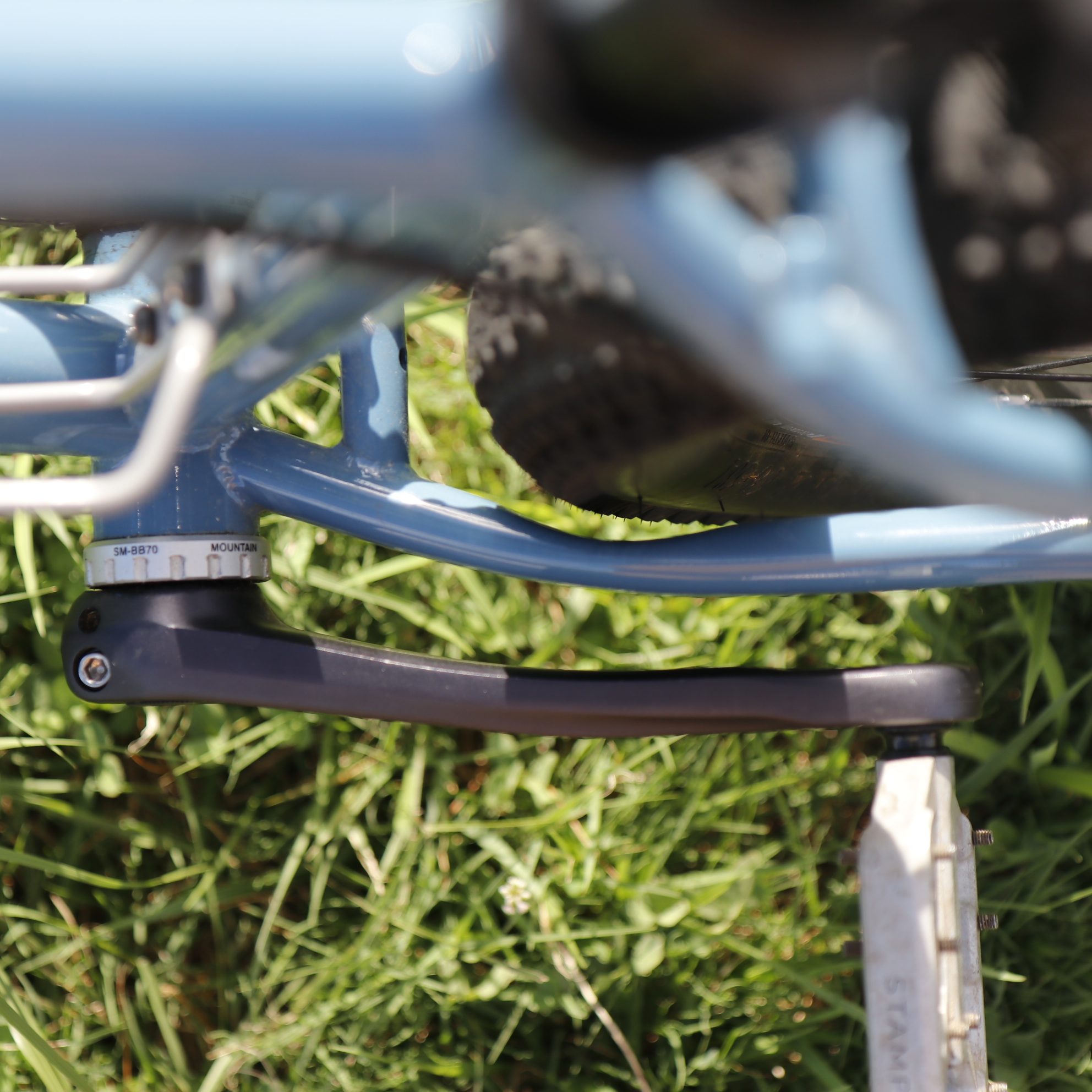 68°のヘッドアングルはモダンなMTBジオメトリの其れよりも立てられた数値となっており、登り・下り、オンオフすべてを走破するツーリングに適したバランスの良い設計です。