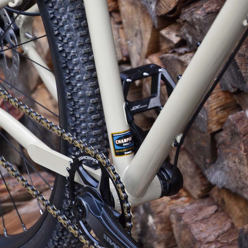 こちらは全地形型自転車(ALL TERRAIN BIKE )というコンセプトのフルリジッドクロモリフレーム。