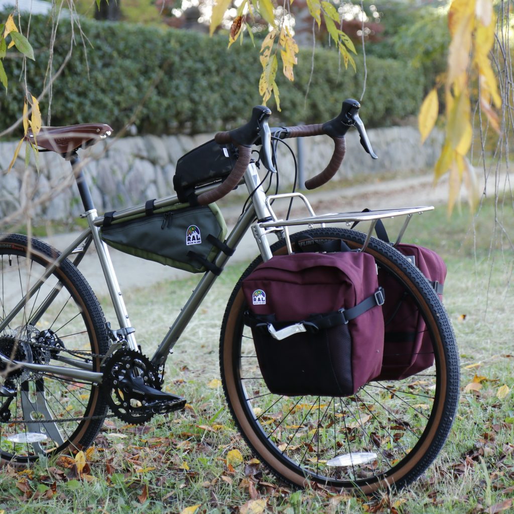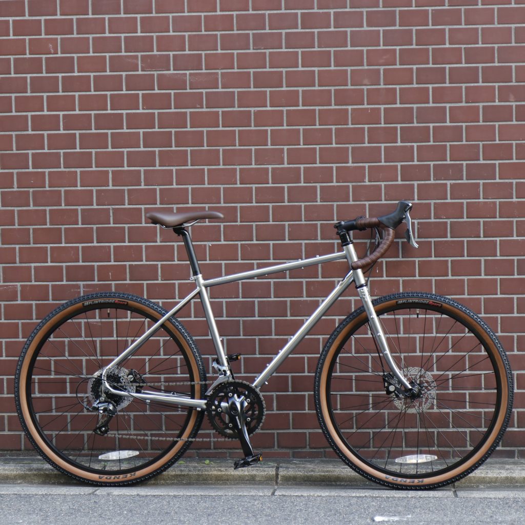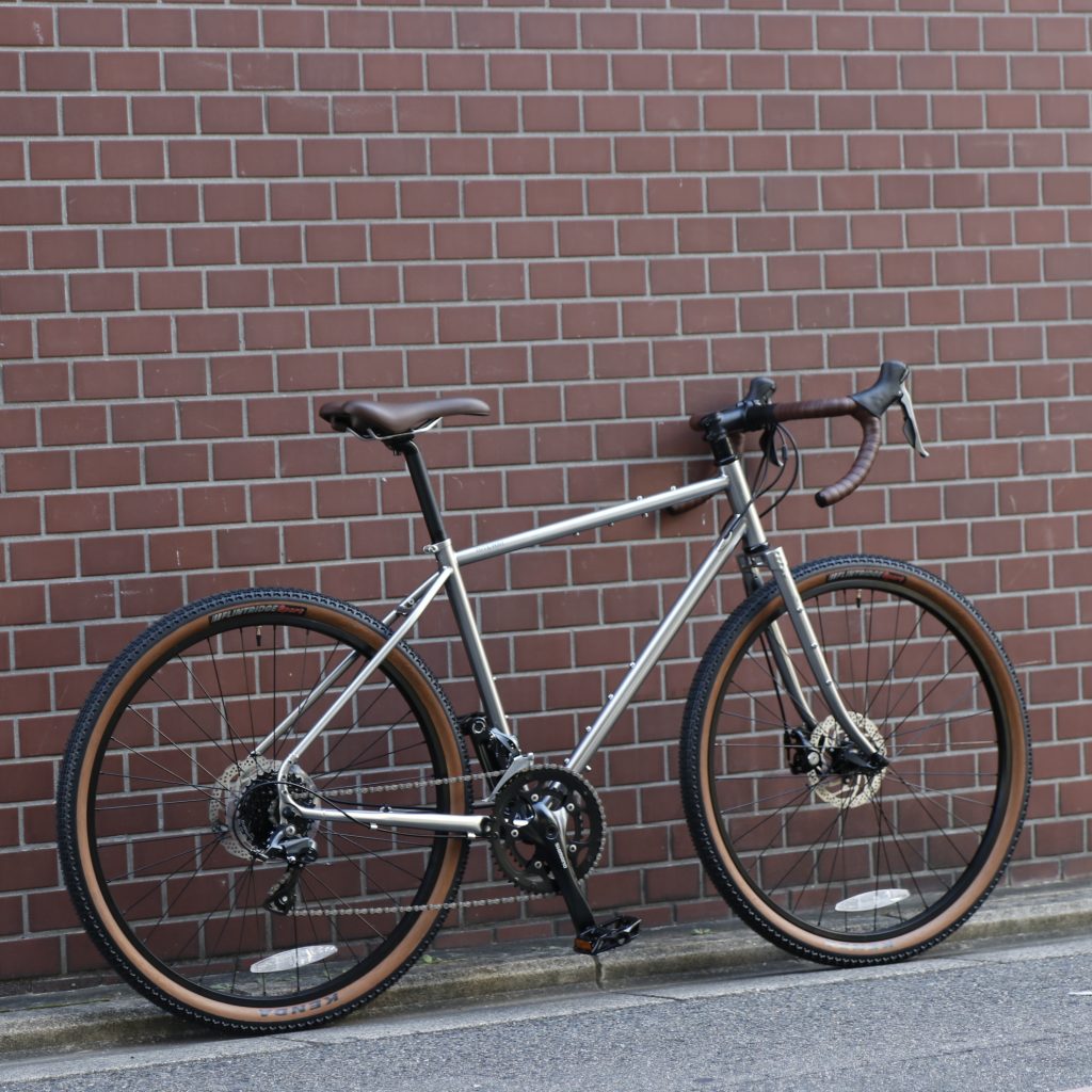 クロモリのシンプルなフォルムで拡張性も非常に高いグラベルツーリングバイク。