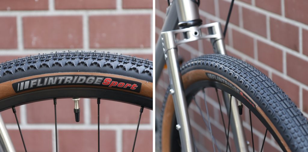 タイヤはKENDA Flintridge 650x45B。ダートでのグリップ・クッション性を確保しながら、連続したノブによって舗装路での転がりも良好。