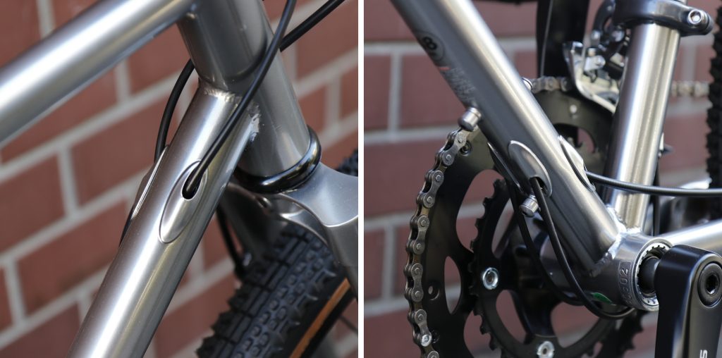 フレーム13か所、フォーク6か所のボトルケージマウント用ネジ穴を装備。