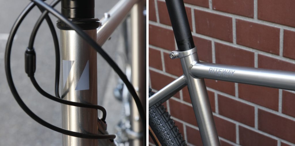 ブランドロゴはヘッドチューブとトップチューブ後方のみと非常にシンプルなグラフィック。