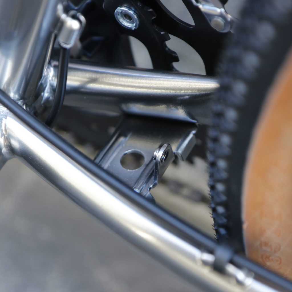 シフト・ブレーキワイヤー共にダウンチューブ内装仕様。ちょっとしたことですがワイヤーが露出していないだけでシンプルなフォルムがより際立ちます。