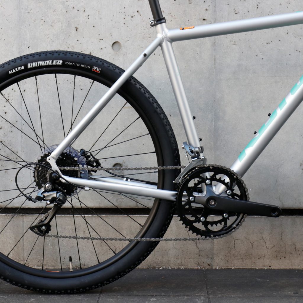 フロントインナー34T × リアローギア34T でギア比1.00を用意してくれているのでダートの急登~荷物を積んでの峠越えも楽しめる内容となっています。