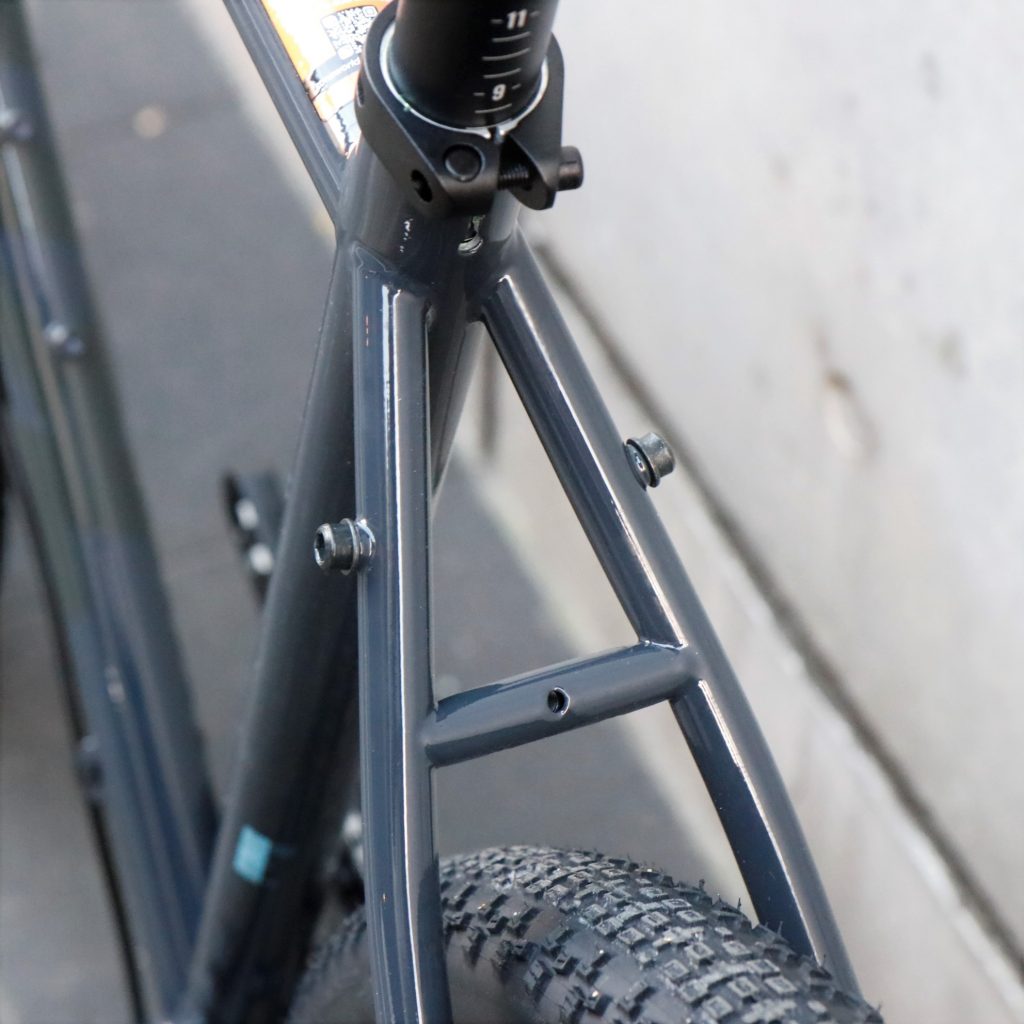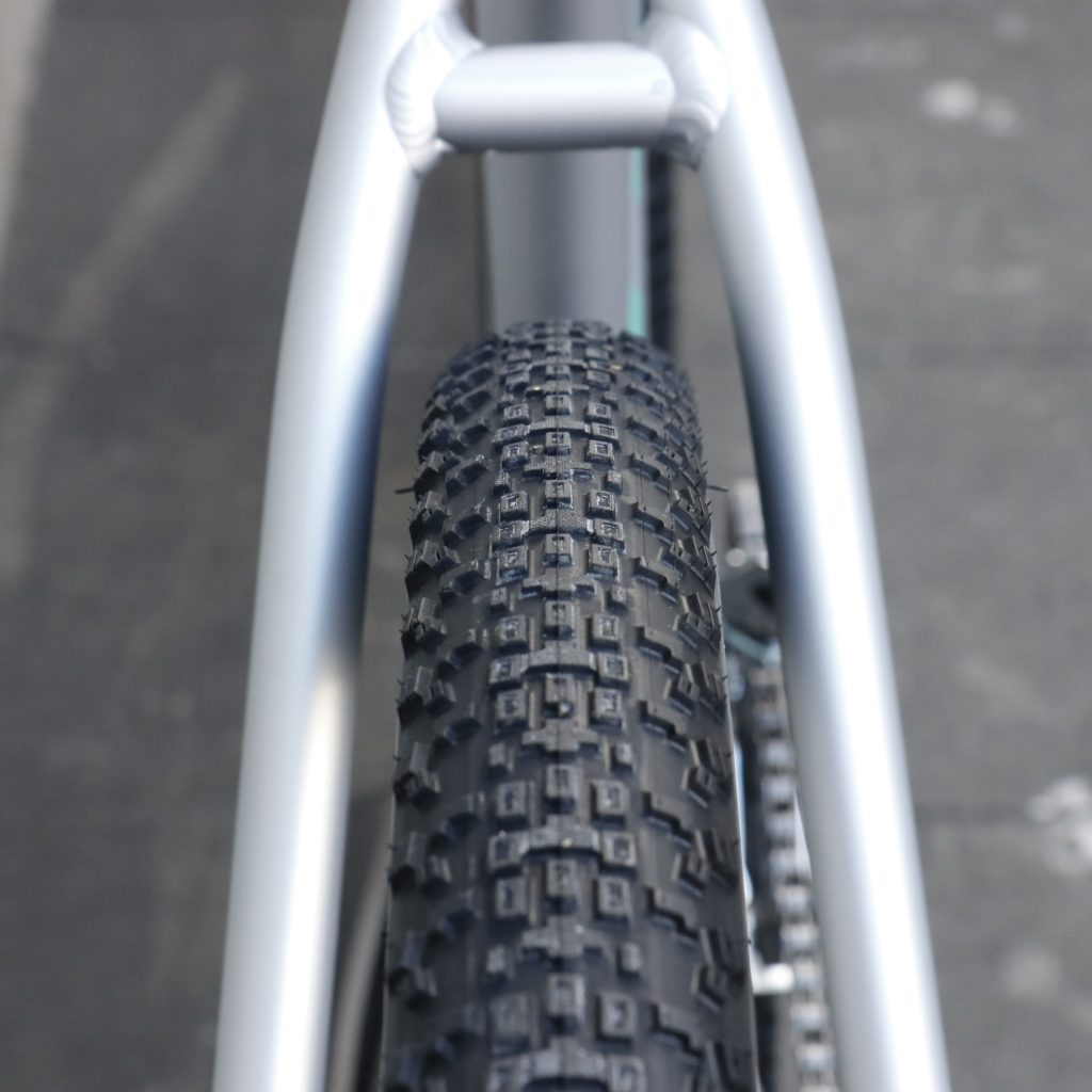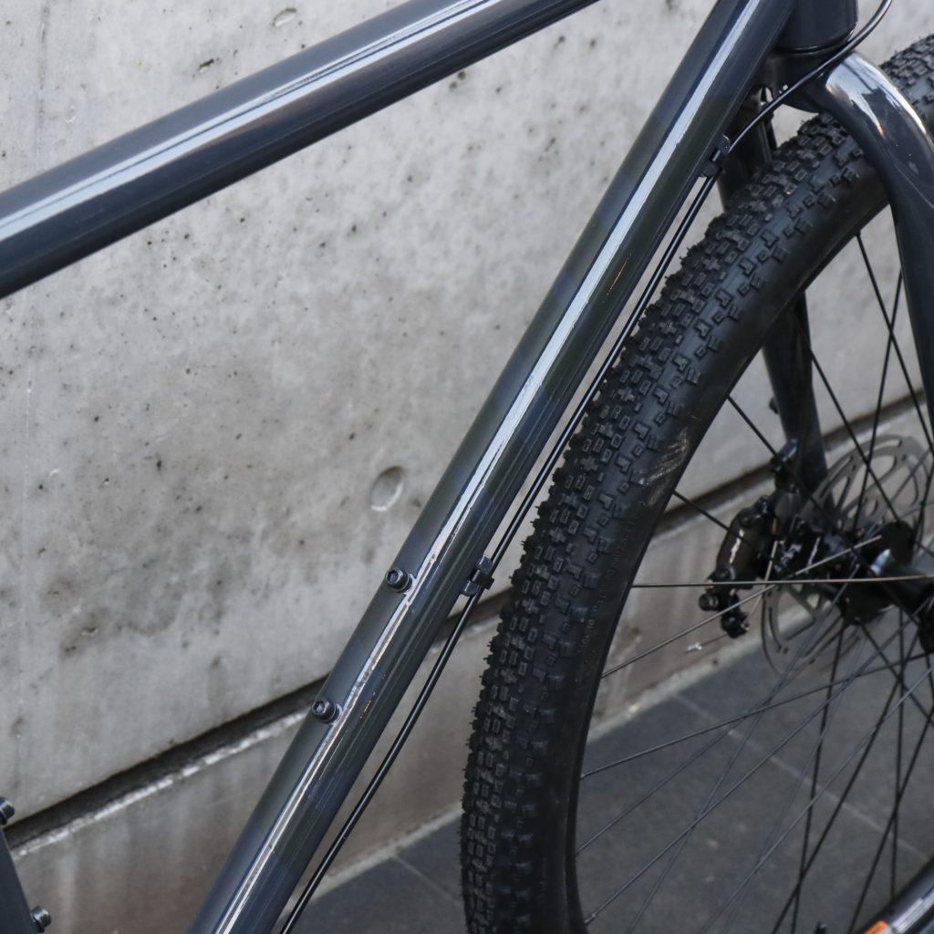 上記写真は2022モデルですが、27.5×2.1のタイヤをギリギリ飲み込むほどのタイヤクリアランスも用意されているので、よりオフロードに寄せたカスタムや巡行性能を重視した700c化も可能です。