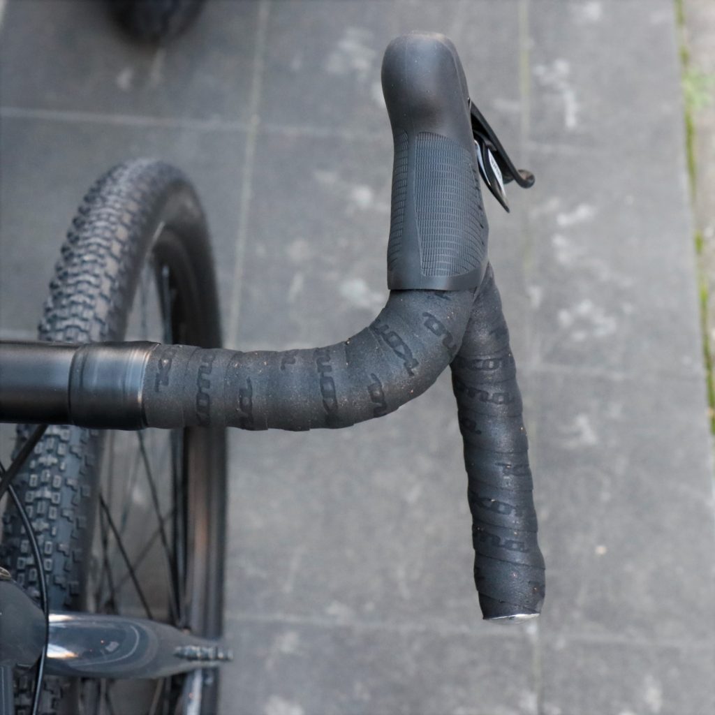 フレアしつつやや開いた下ハンドルバーは下りで自転車を安定させるのにとても役立ちます。