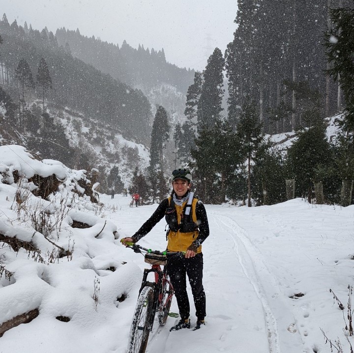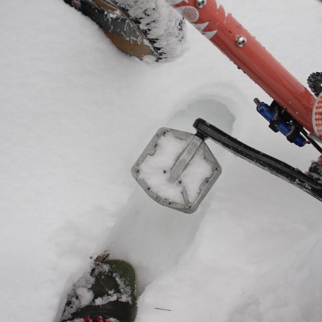 もはや自転車で走れないくらいぎっしり積もって、押して歩いたり転んだり。