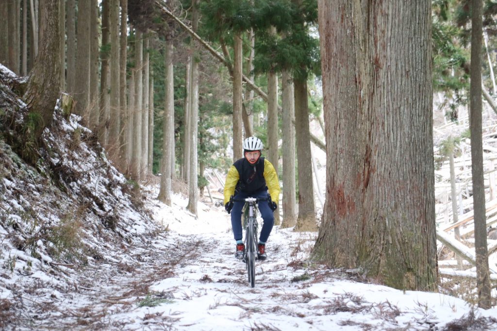 見慣れた林道も徐々に全く異なる風景へと変わっていき、最後には一面の銀世界に。
