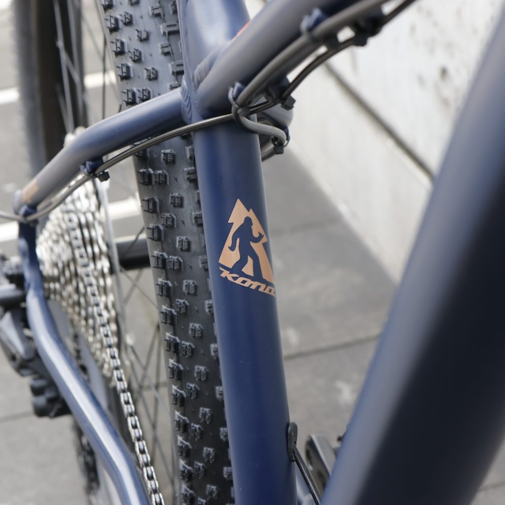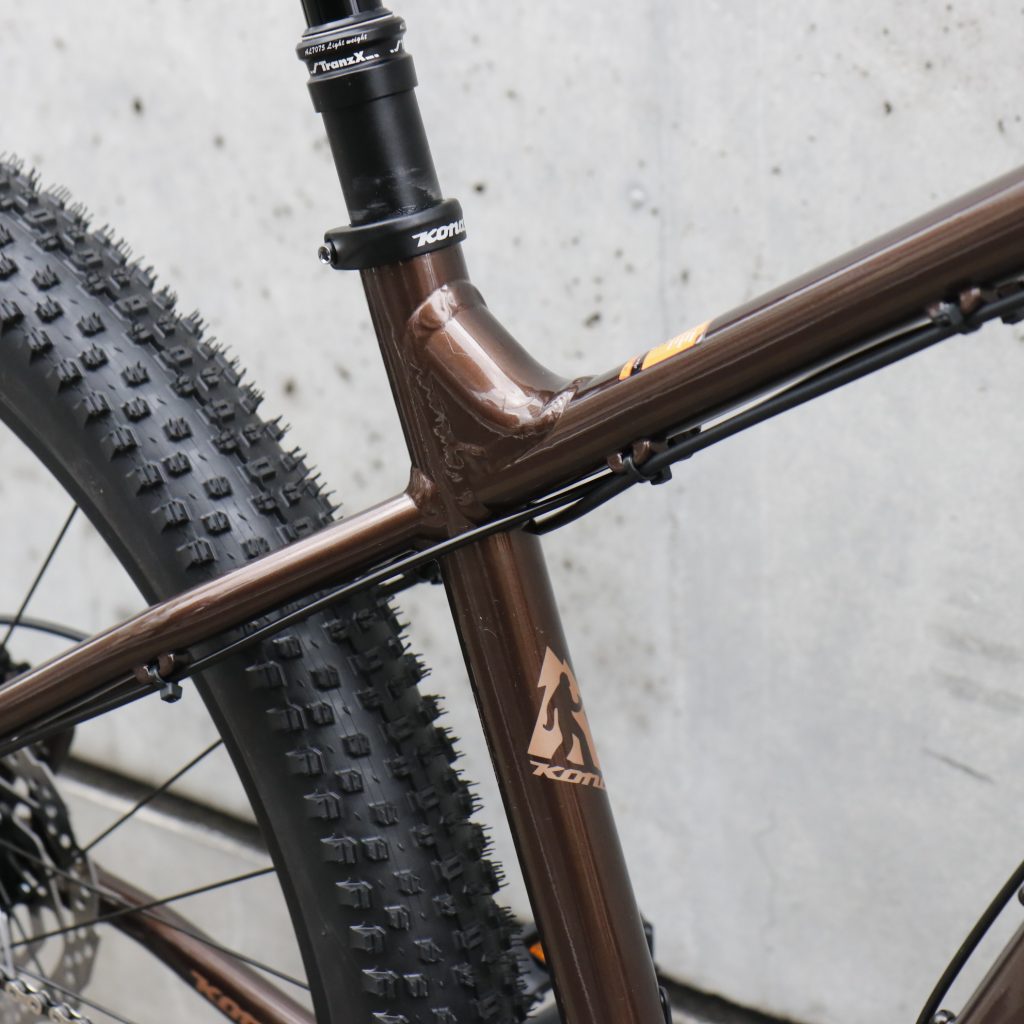KONAの6061アルミフレームはバテッド処理されており、強度計算を行った上で不要なところは薄く仕上げてあるので軽くしなやかな仕上がりです。