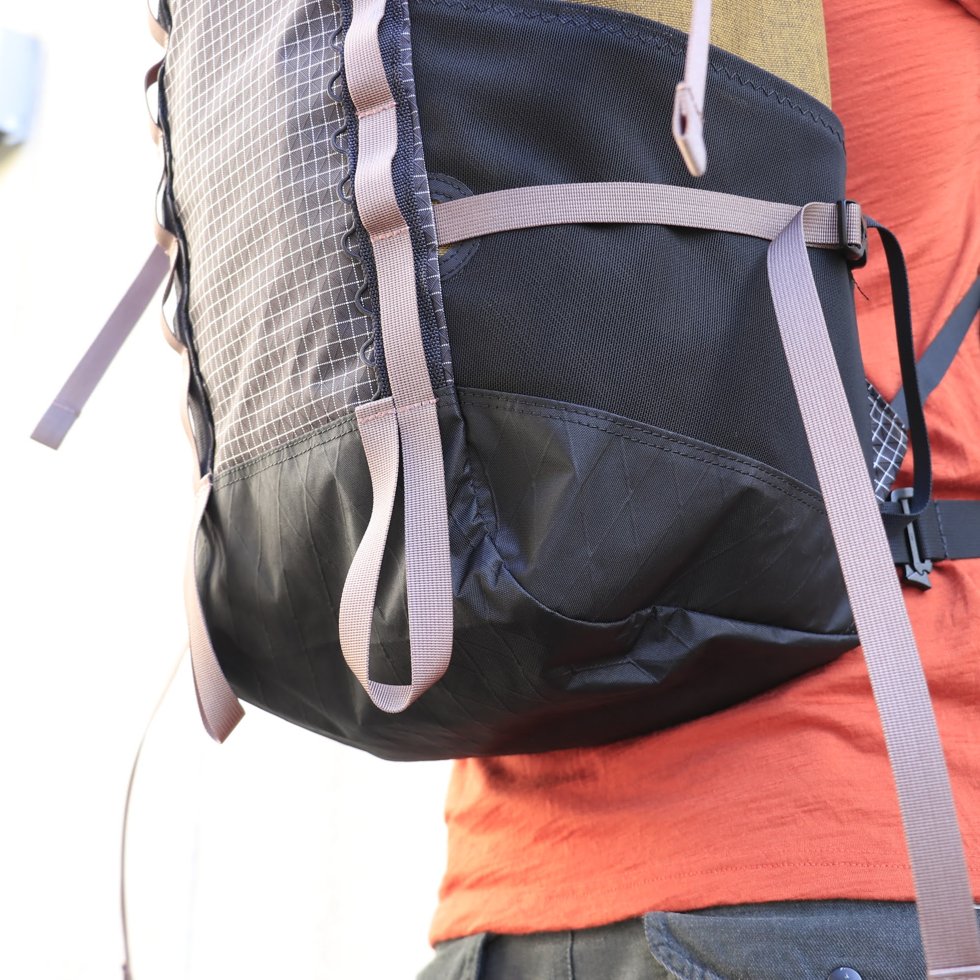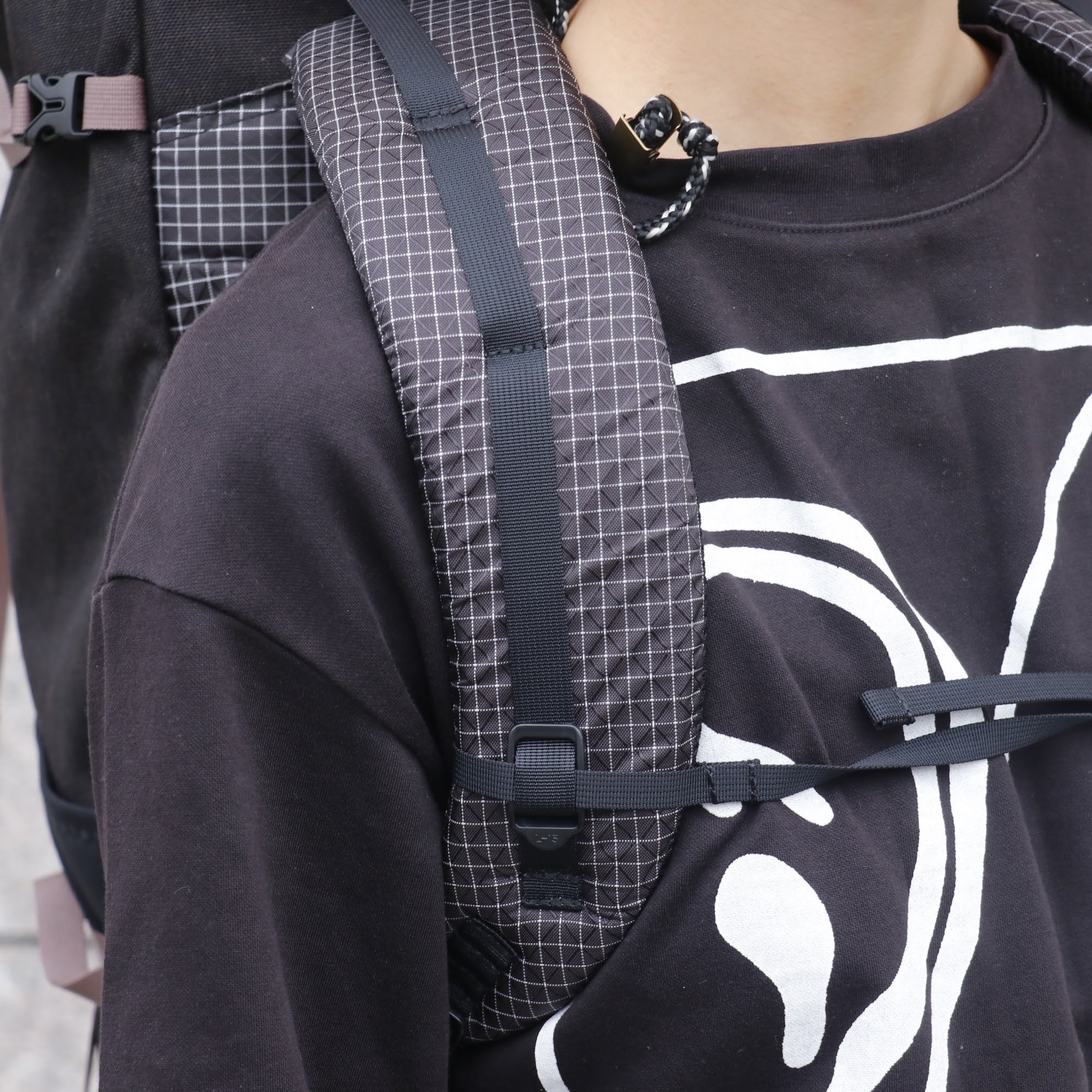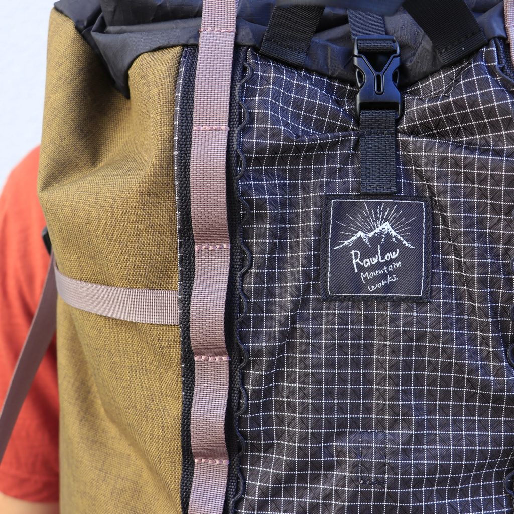 RawLow Mountain Worksのバックパックには特徴的なデイジーチェーンが付いています。これは過去の偉大なクライマーたちへのリスペクトの想いが込められているアイコン的な箇所でもありますが、使い手のイメージで色々と拡張して使用して欲しいという、我々の想いも込められています。ギアループやアックスホルダー等、単なる軽量化だけには走らず、必要だと思うパーツは積極的に残しています。【インナーパッド】