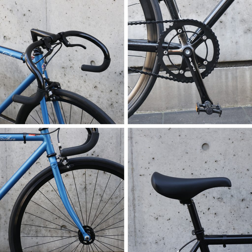 過去カラー:ライトブルーのFETHER 存在感あるディープリムにセミドロップハンドル、そして穴明け加工とフォルムが個性的なMICHEシートポストを 。
