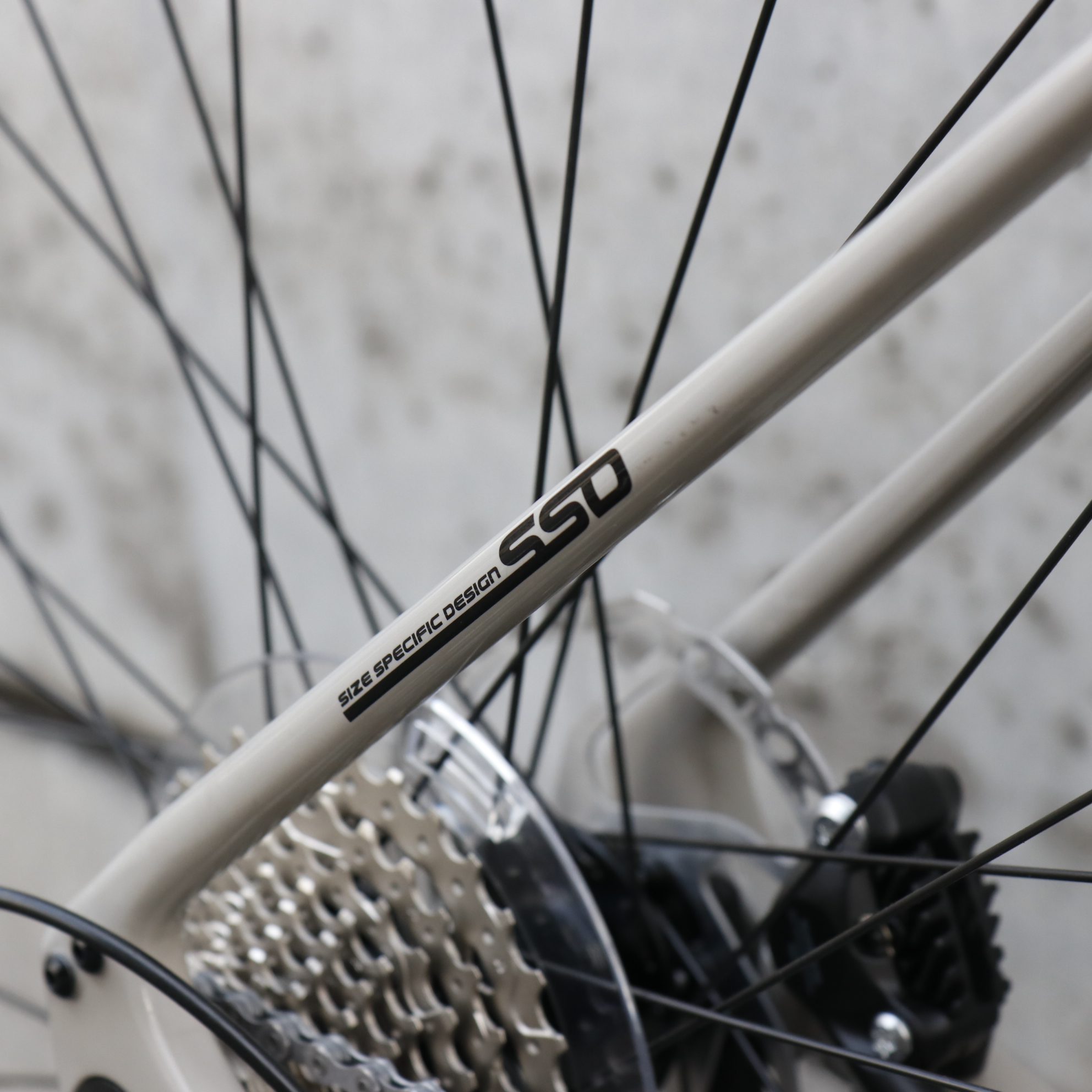 多くのメーカーが共通スペックとするチェーンステー長などをサイズ毎に変える事で全てのフレームサイズでJAMISの考える最適な乗り味になる様設計されています。
