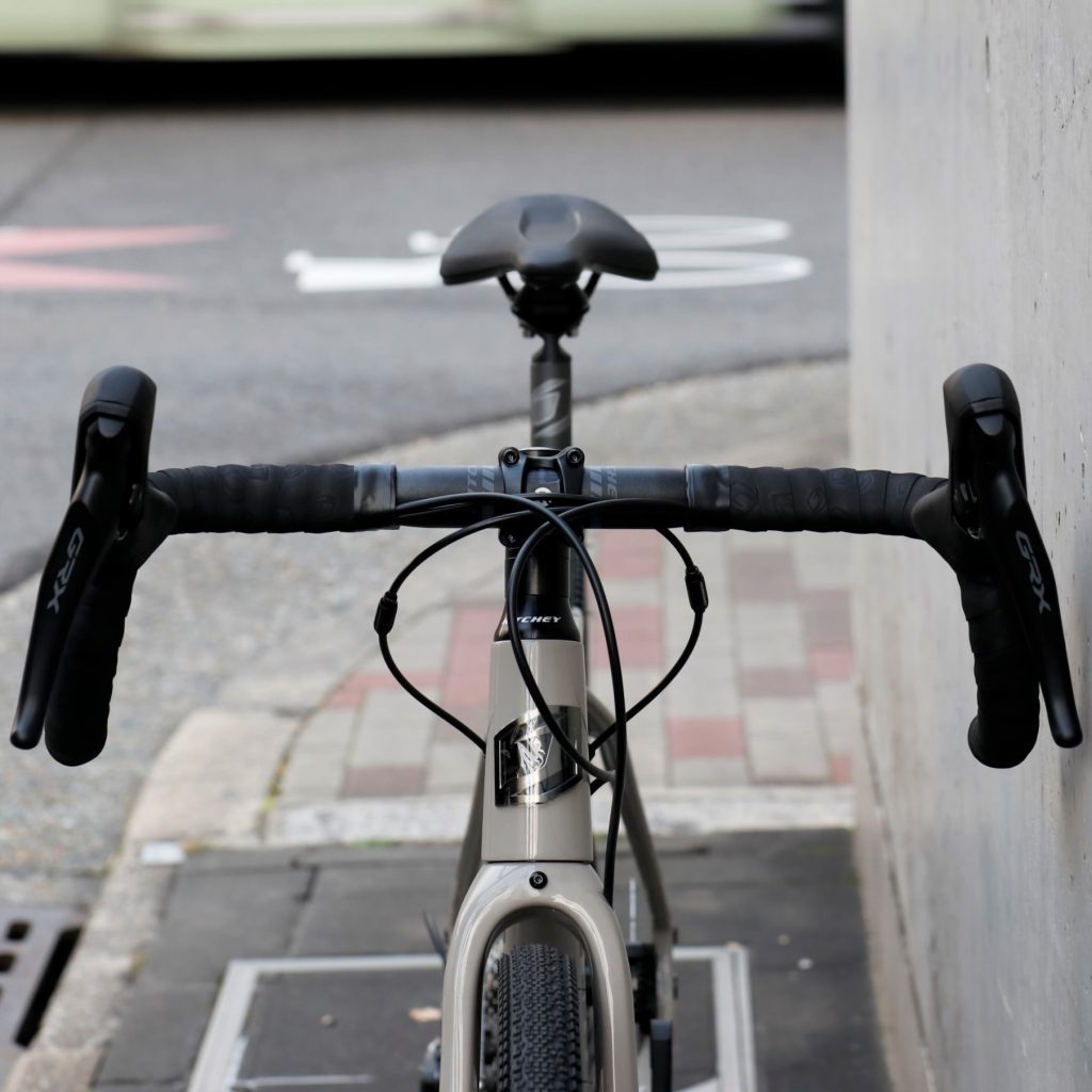 ややフレアしたハンドルはグラベルもオンロードも使いやすいニュートラルなポジション。