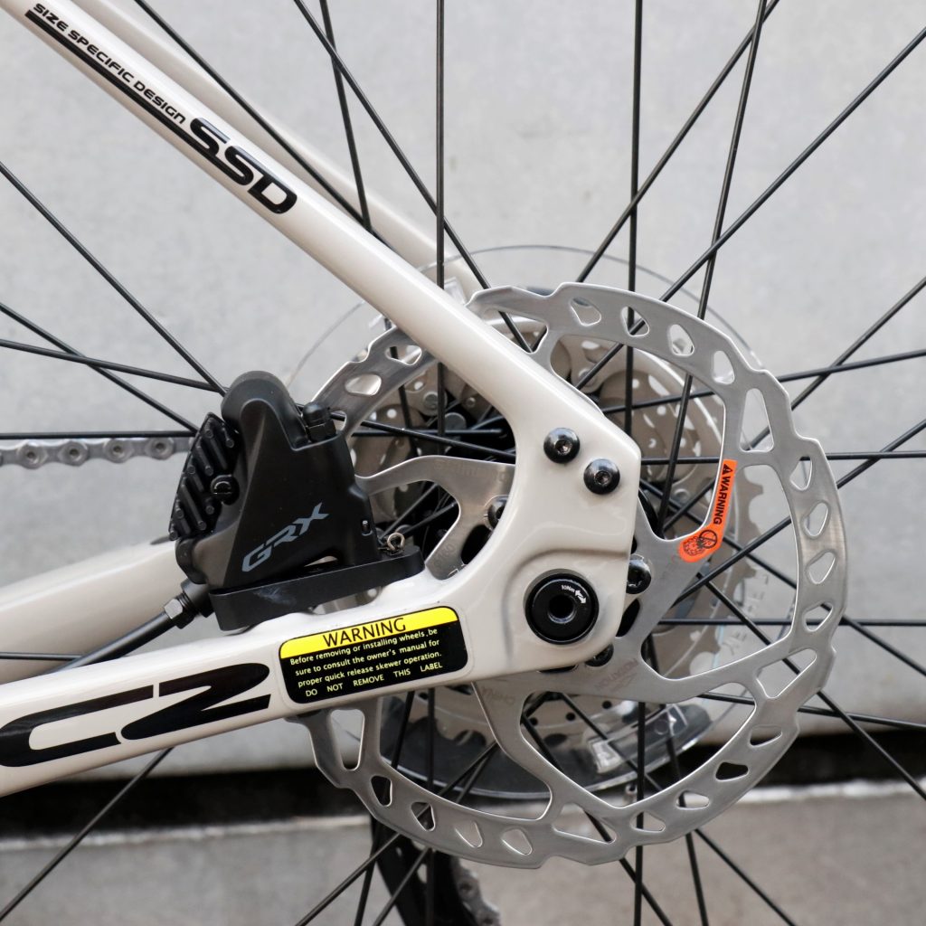 | ブレーキ | Shimano GRX BR-RX400 hydraulic disc brakes with resin pads and Fin,Shimano 160mm rotors | |