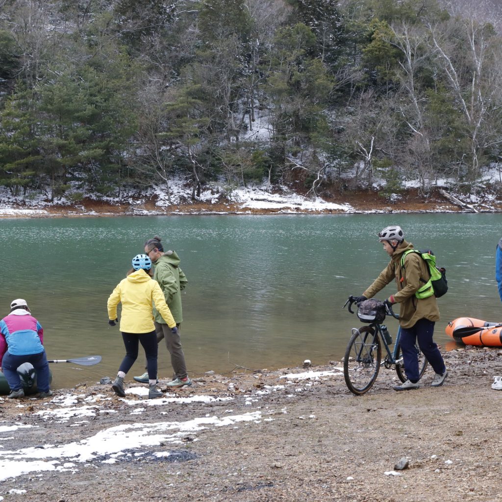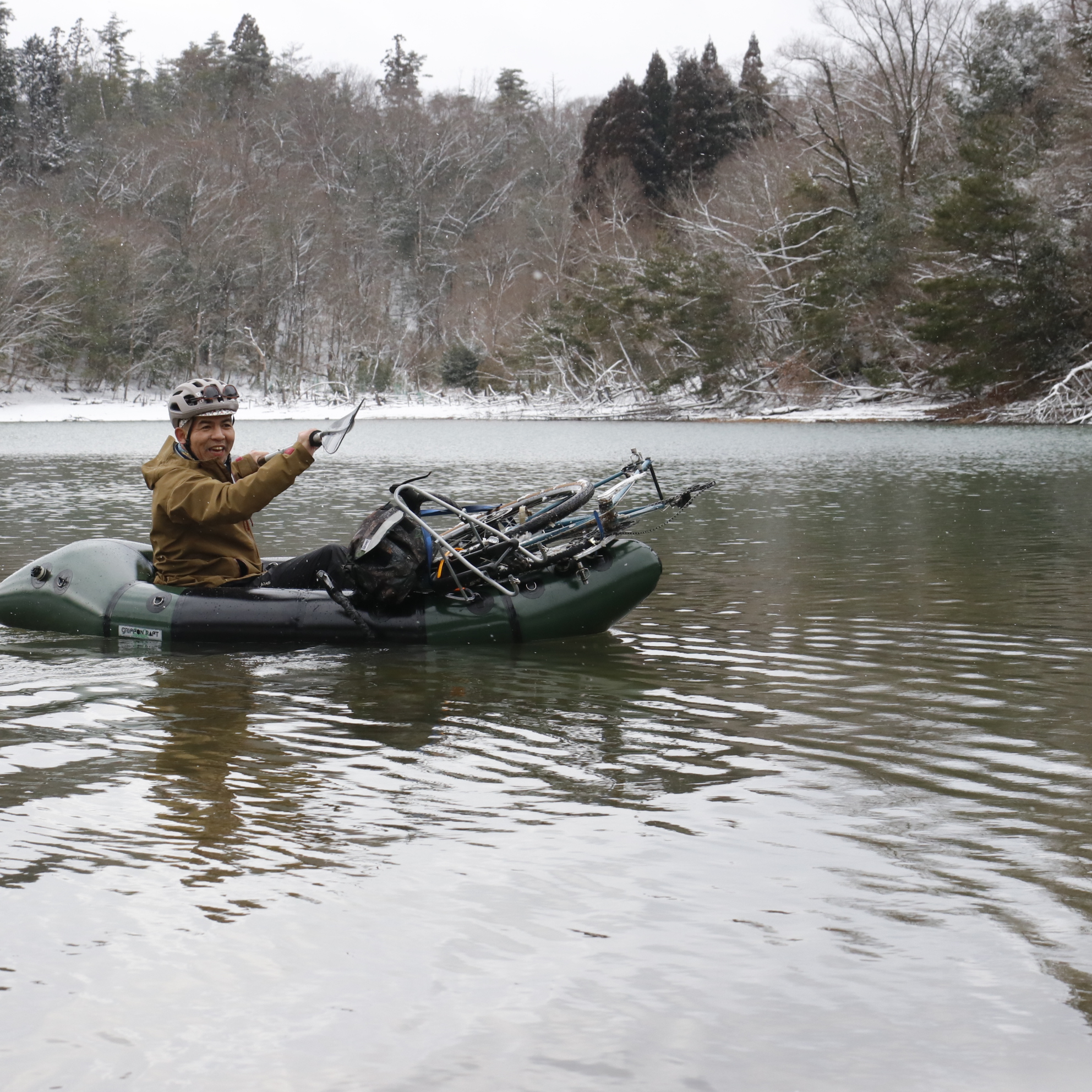 【ハテナサイクリング】BIKE RAFTING!雪景色の中パックラフトで舟遊びしてきました