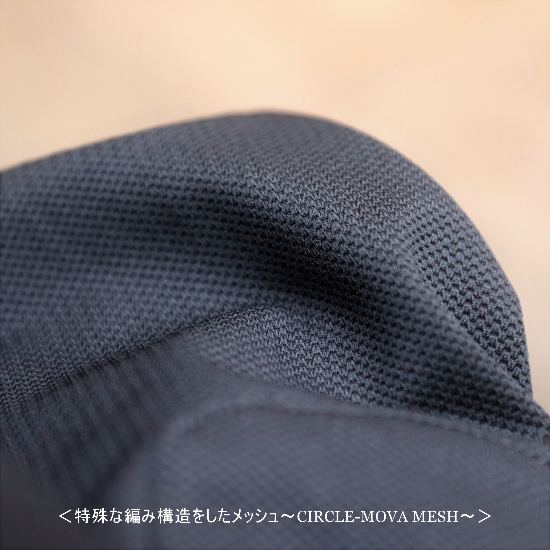 ◎CIRCLE-MOVA MESH(画像ブラック)には、”特殊な編み構造をしたメッシュ” を。