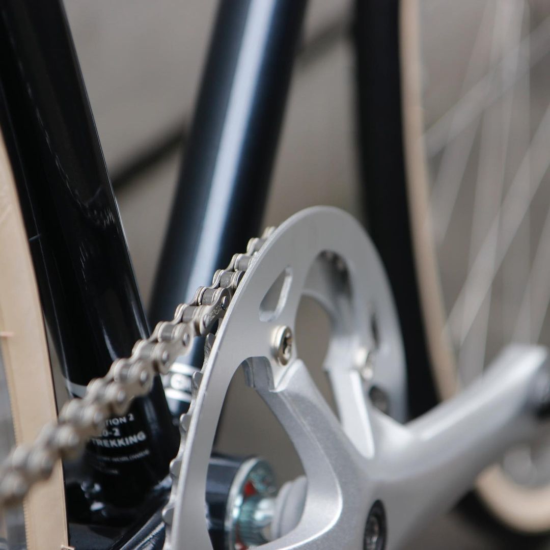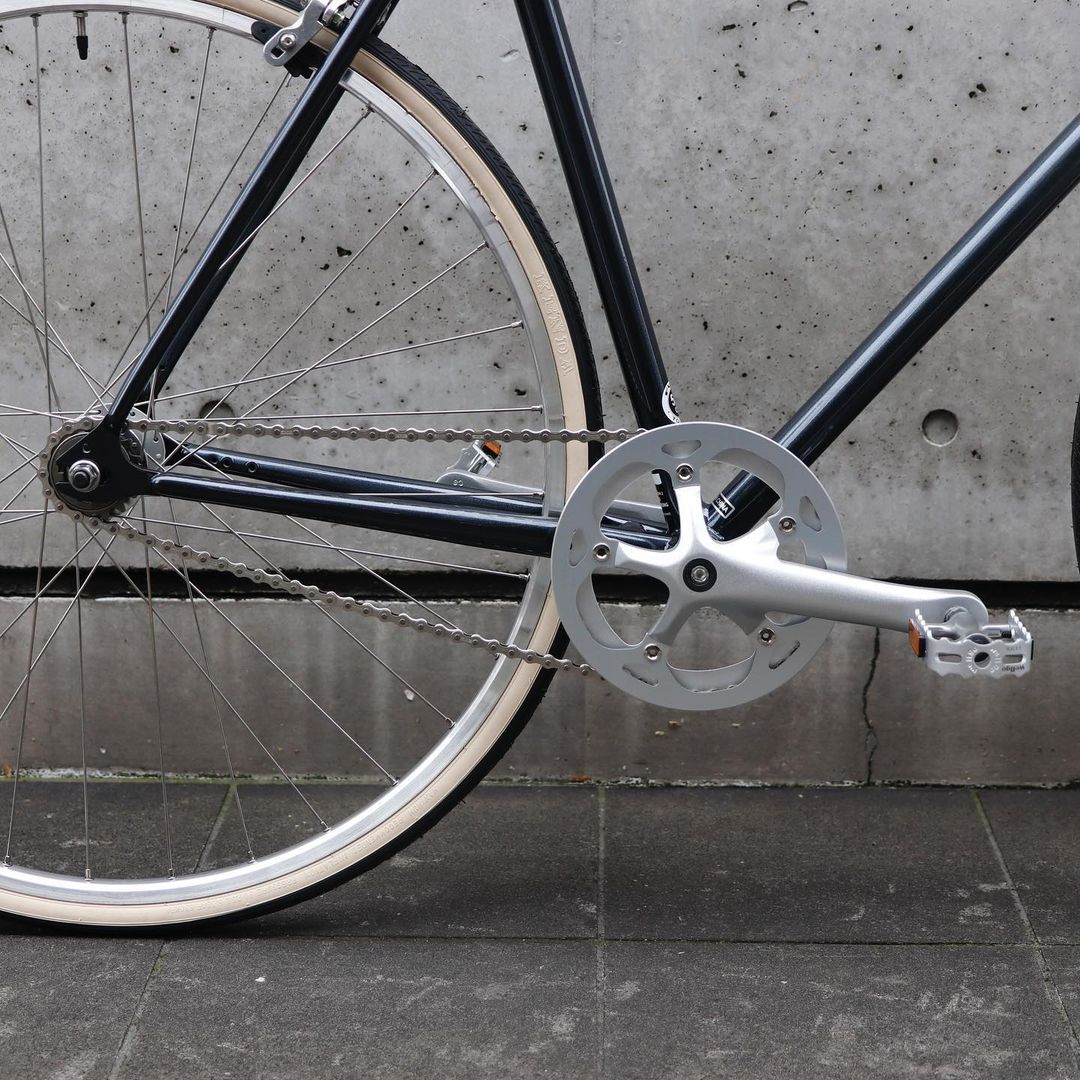 シングルスピードならではのシンプルなルックスにシルバーでクラシカルなスタイルが映える
