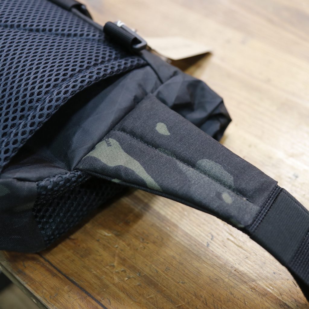 というよりもあくまでボディバッグとしての機能性がメインに考えられていて、背面には通気性の良いメッシュが使われているので夏も快適な担ぎ心地です。