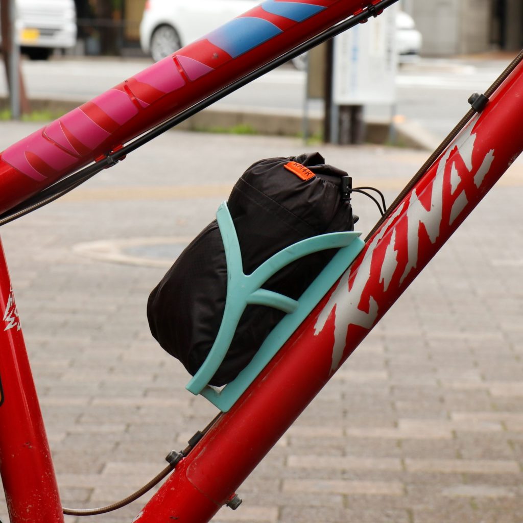 付属のポーチに収納できるパッカブル仕様。自転車のボトルケージに楽々収まる掌サイズなので、バイクパッキングのブーストバッグとして携帯するのもオススメです。