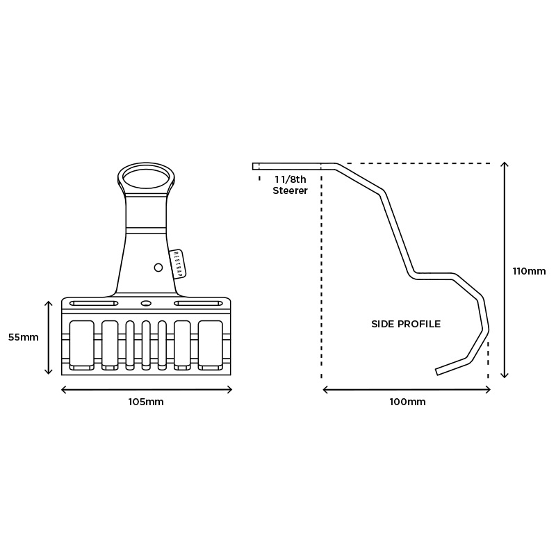 取り付けはアイレットやマウントを必要とせず、フォークコラムに通すだけ。