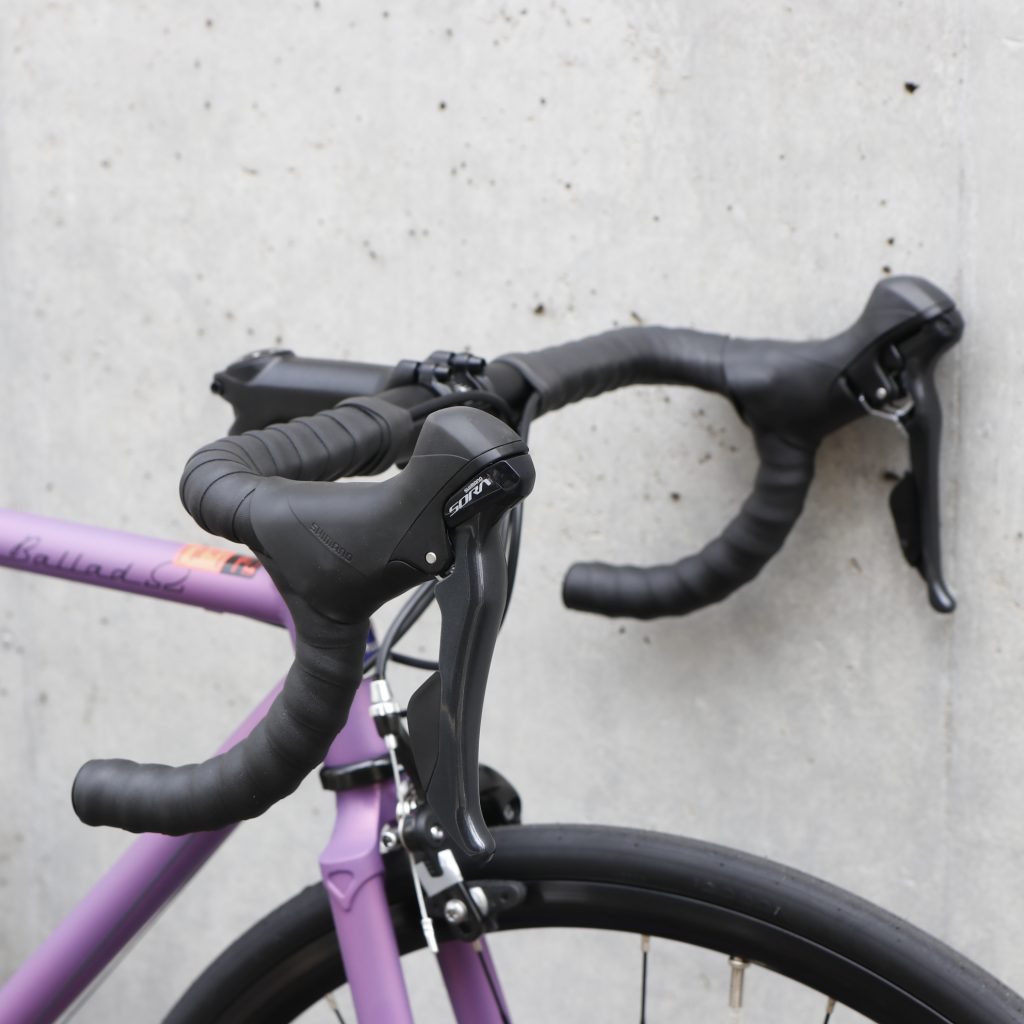 細身でホリゾンタル形状、クラシカルなクロモリフレームに、ハンドルから手を放さず変速可能なSTIレバーやブラックパーツなどなど、モダンなルックス&スペックをバランスよく織り交ぜたBALLAD OMEGA。